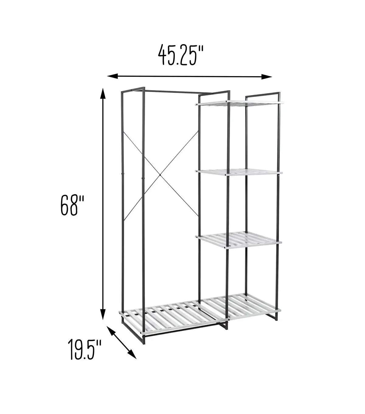 - 45.2in L x 19.3in W x 68in H