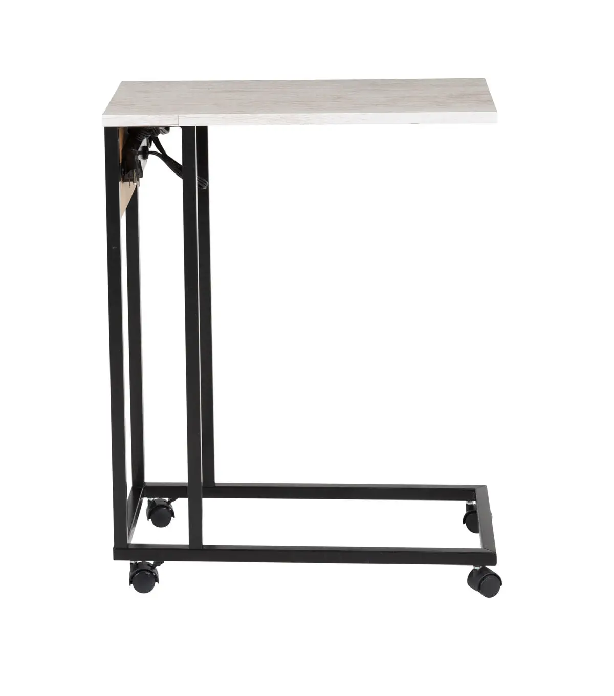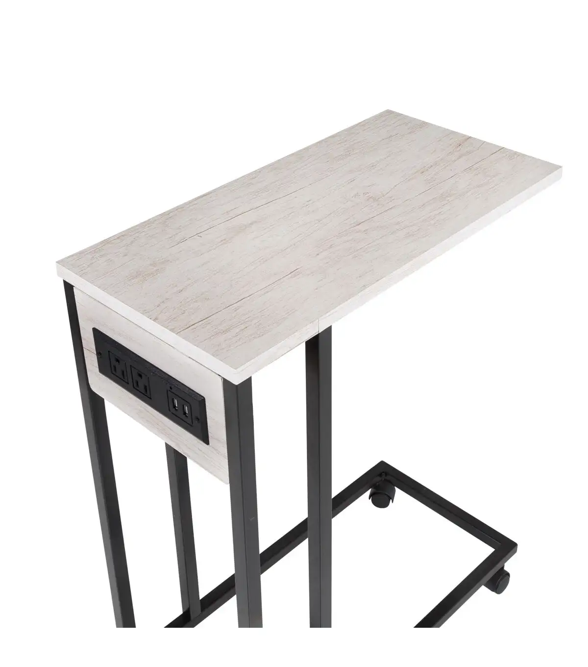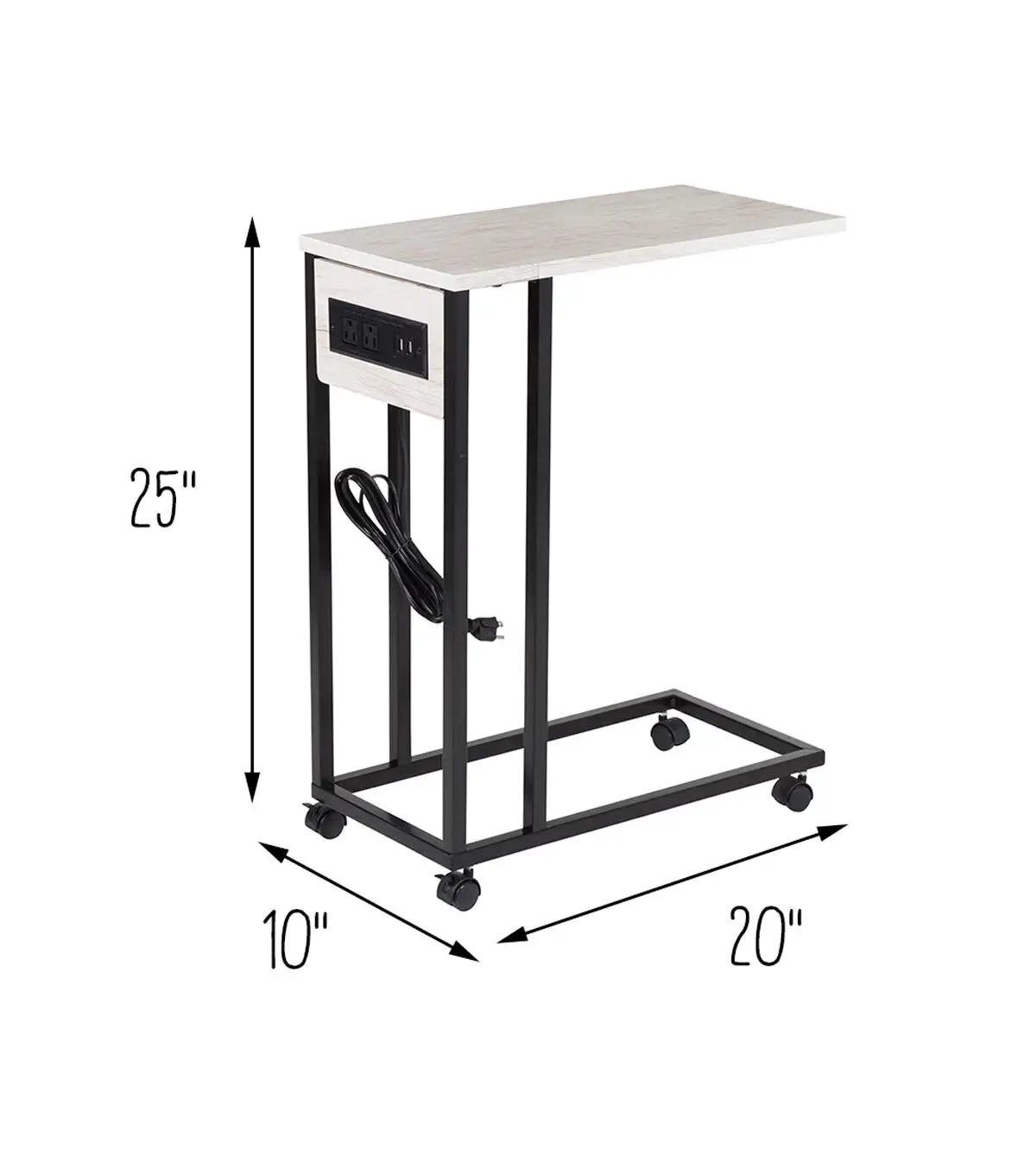 - Rolling c-shaped end table with 2 outlets and 2 USB charging ports