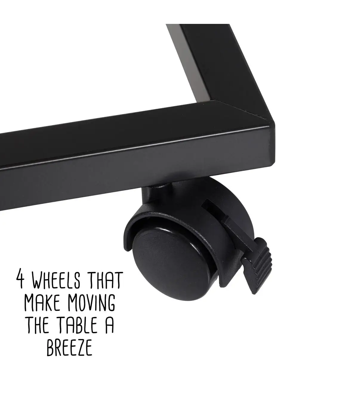 - Narrow build and portability make it an ideal multipurpose table for small spaces