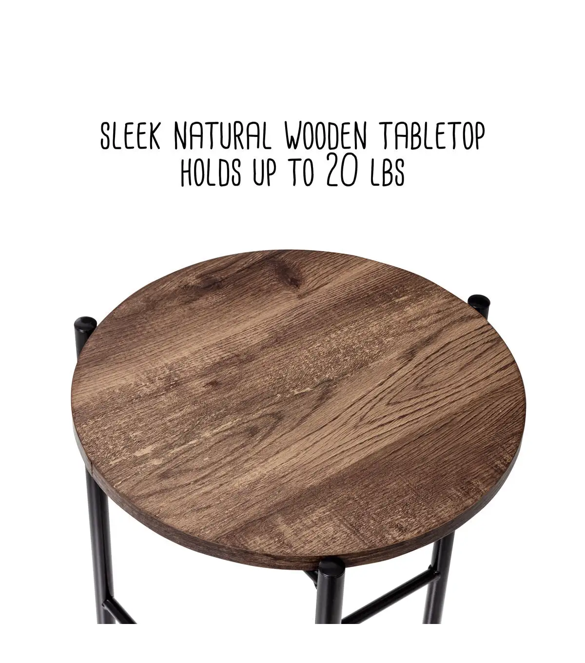 - Wooden tabletop with natural grain finish holds up to 20 lbs