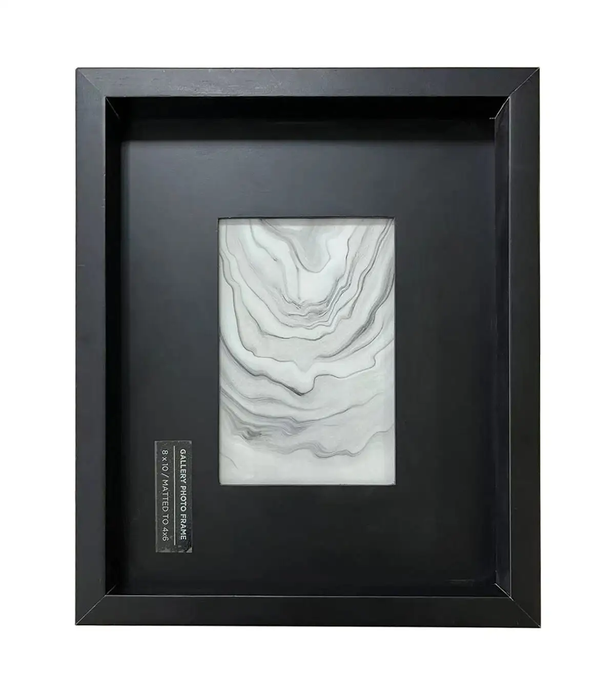 Display a favorite wedding photo in the Wooden Frame with Mat - Black. This beautiful pine wood frame in black comes with a black mat and will look perfect on a bedroom or the gallery wall. You can accentuate it with embellishments for added charm. It will also make a lovely housewarming gift for a friend.