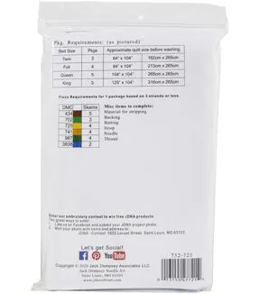 Create a beautiful quilt top using this great kit. It consists of individual squares to stitch and join together to form a quilt top. The stitching designs have been stamped using ink that washes away with any liquid and the fabric is a cotton/poly blend broadcloth. This package contains six 18x18 inch quilt squares, instructions for completion and care and complete list of DMC floss requirements. Fabric, backing, needle, thread and floss all sold separately. Design: Golden Sunflowers. Made in USA.