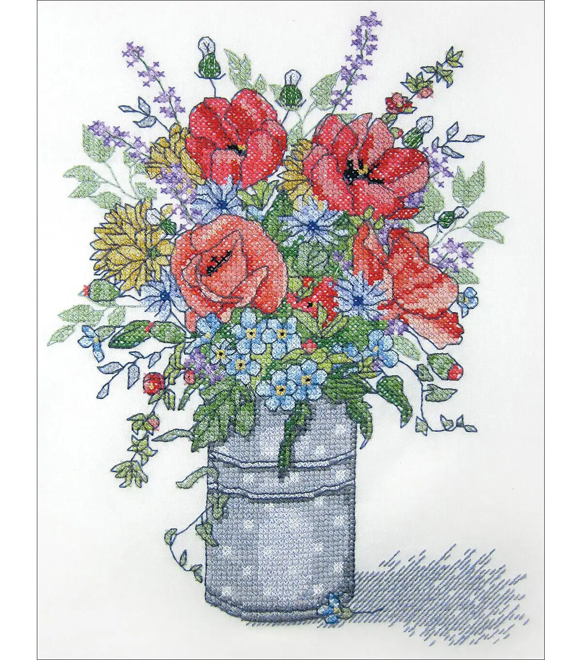 Beautiful designs and top quality materials make Design Works one of the top cross stitch kit makers worldwide. This package contains printed fabric with wash-out ink, embroidery floss, one needle, chart and instructions. Design: Poppies. Finished size: 11x14 inches. Made in USA.