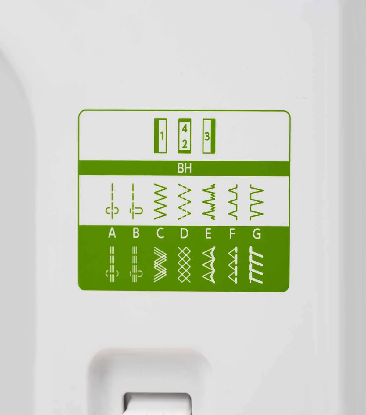 - 15 Built in Stitches including straight, zig zag, overcast and stretch varieties. Maximum stitch length of 4mm and width of 5mm