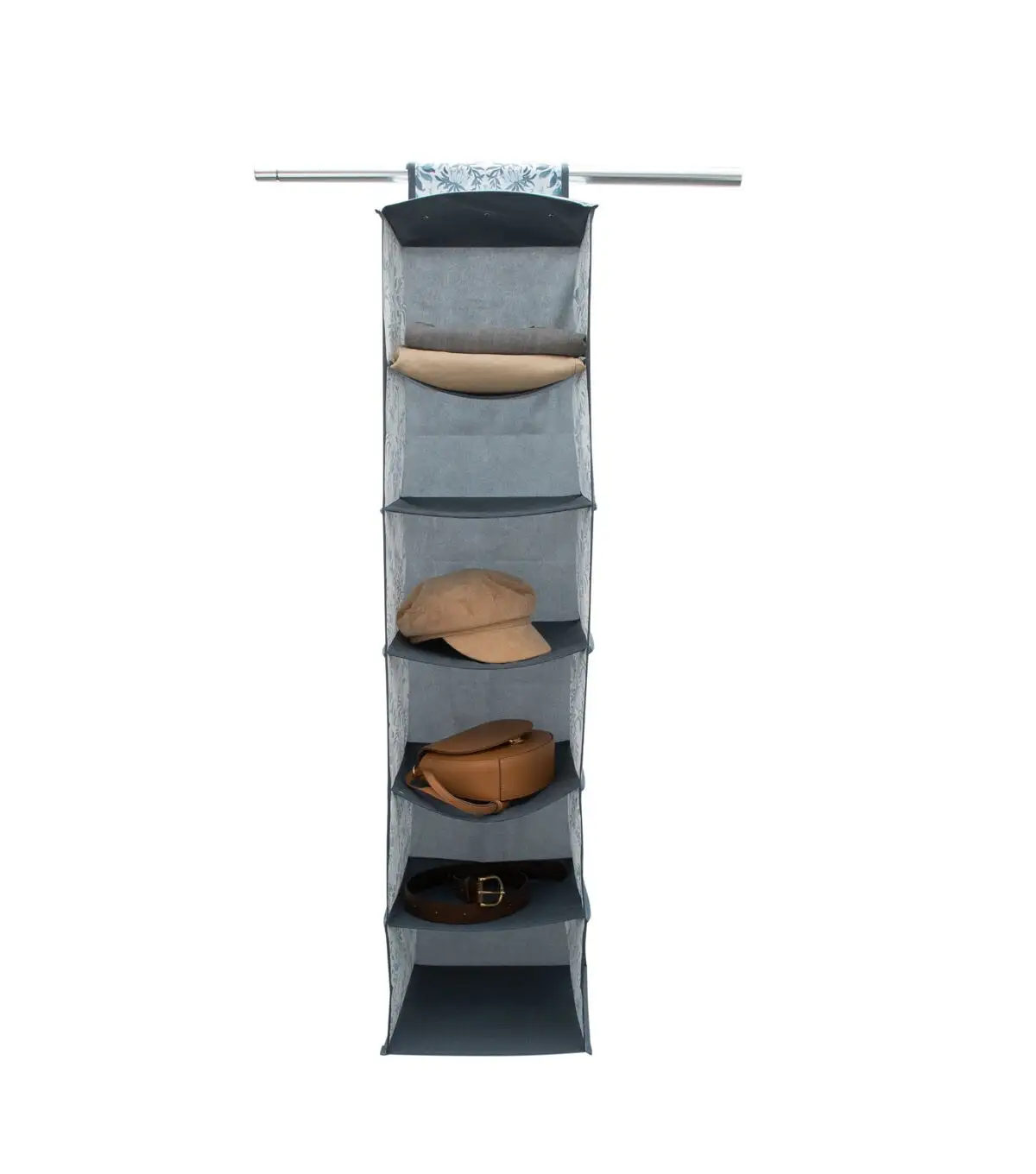 Laura Ashley's 6 Shelf Closet Organizer is made of 100% Polypropylene Nonwoven breathable material. It acts as instant organization for your closet or bedroom. It has 6 full length board shelves to prevent bowing and to allow easy access to all of your garments and belongings. The sturdy and durable fabric and cardboard liner helps maintain shape of the closet organizer. Easy installation hangs onto any closet rods with its strong Velcro closure, and when not in use, simply fold it up and put in storage, saving space. This organizer it perfect for folded sweaters and pants. It adds additional shelving into your closet.