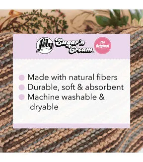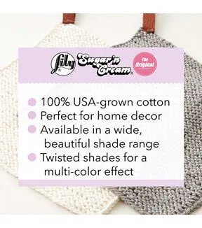 Lily Sugar'n Cream Super Size Cotton yarn is a natural, 100% USA-grown cotton yarn. The perfect choice for your knit and crochet home decor needs. Lily Sugar'n Cream is a versatile worsted weight yarn, that’s great for small projects like dishcloths and potholders, to home decor staples like afghans! Available in a wide variety of shades, including neutrals, brights, and pastels. Conveniently machine washable and dryable for easy care.