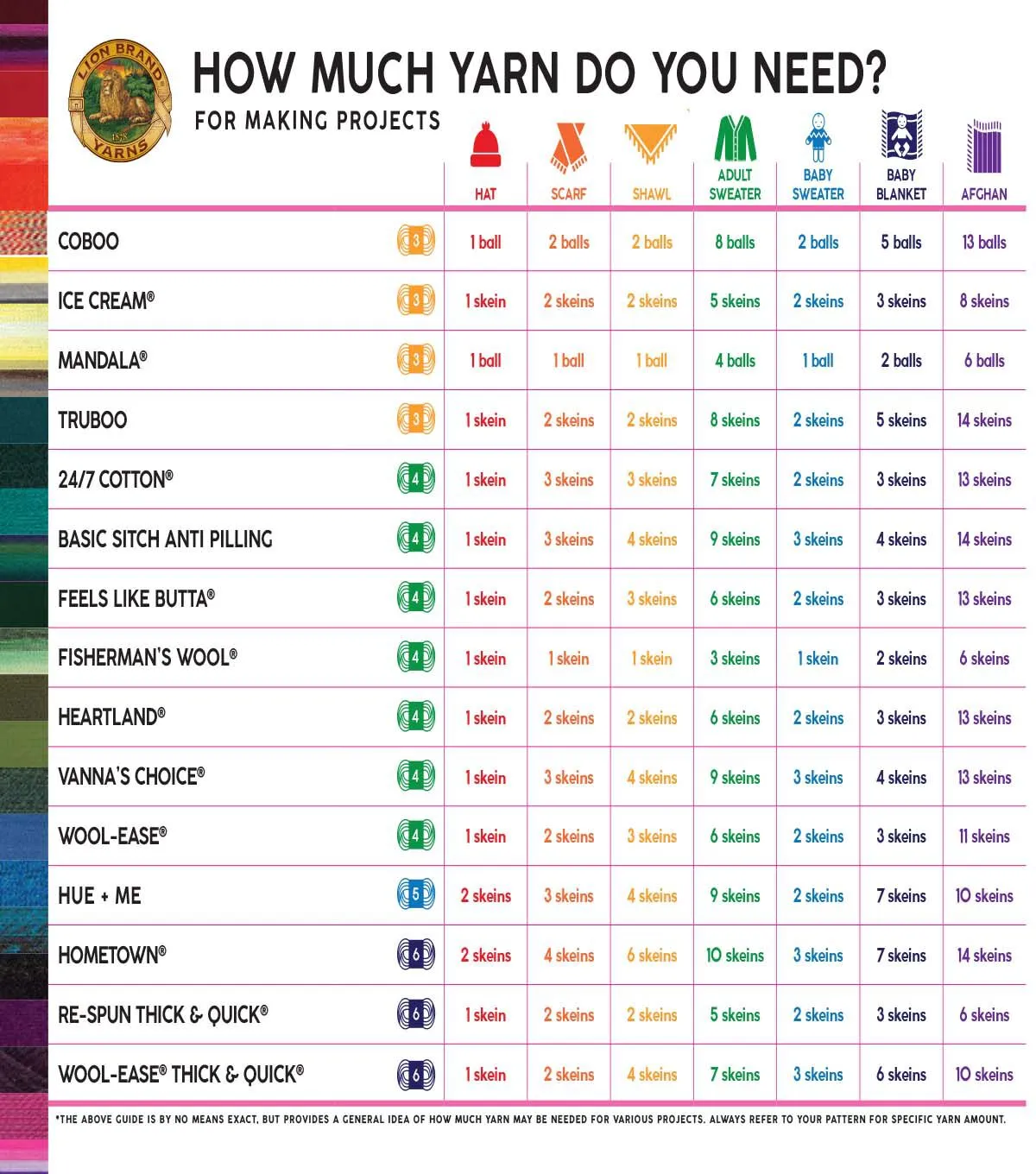 - Crochet Gauge: 4 in = 14 stitches on size G6 hooks