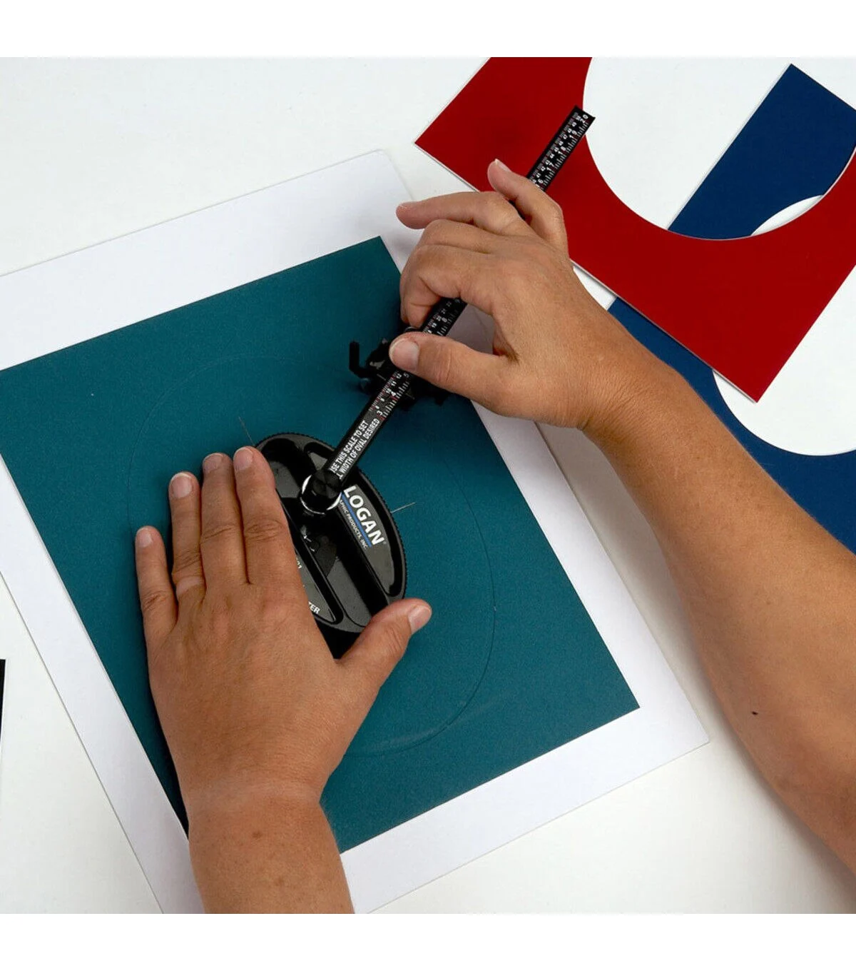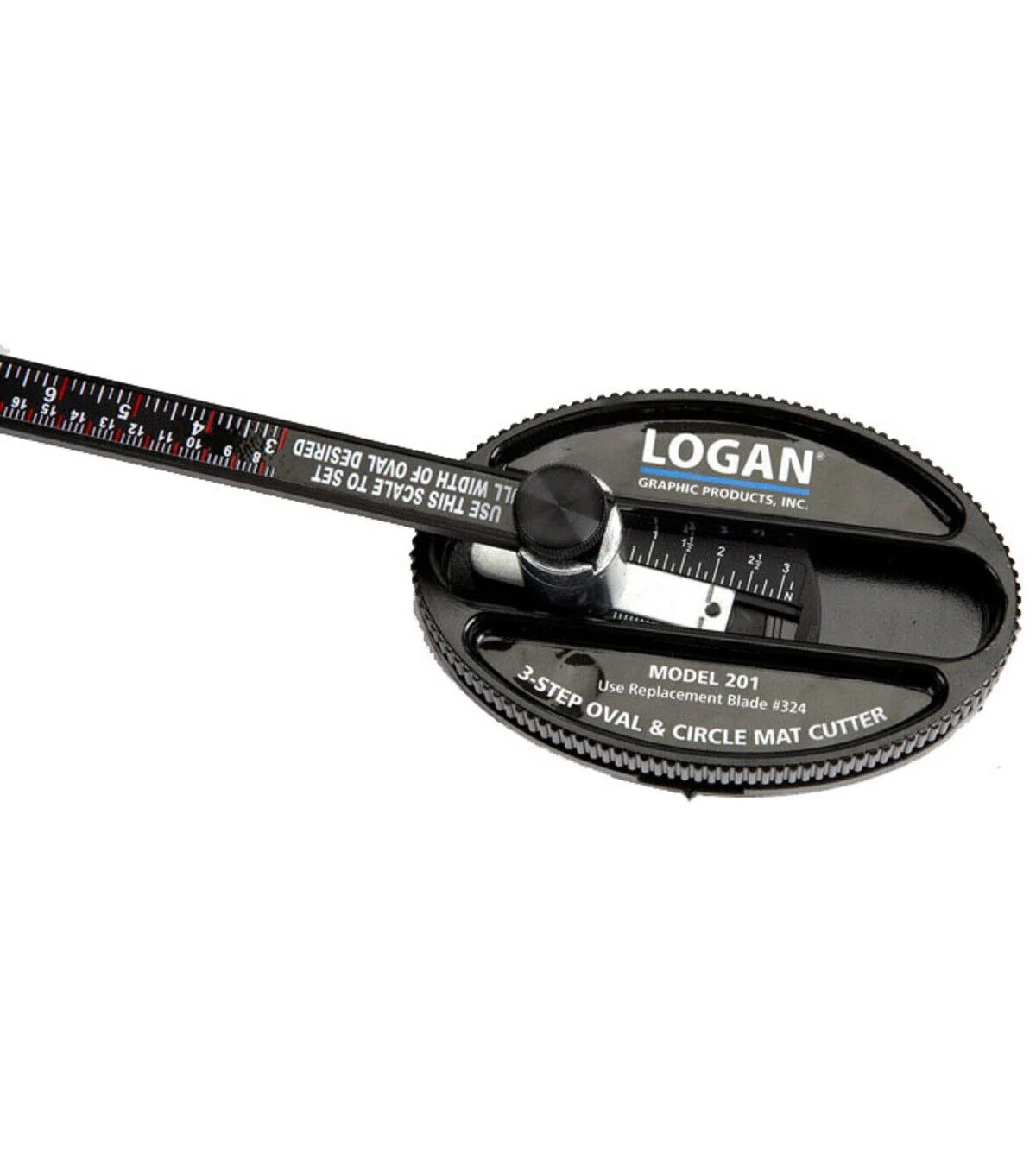 This exclusive three-step stepping mechanism ensures a clean, smooth bevel on any mat. The Logan 201 is designed to cut beveled ovals ranging from 3.25' x 4.75' to 20' x 23' in size. It will also cut beveled circles from 4.25' to 20' in diameter. The stepping mechanism allows the blade to gradually and precisely enter the mat in three stages and produce professional quality bevels that are crisp and attractive. The radial plate and blade depth are both adjustable.