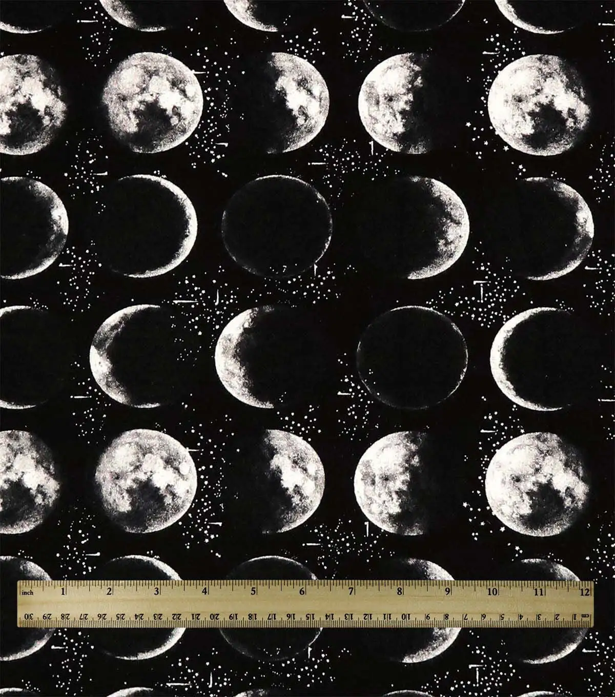 Moon Phases On Black Super Snuggle Flannel Fabric