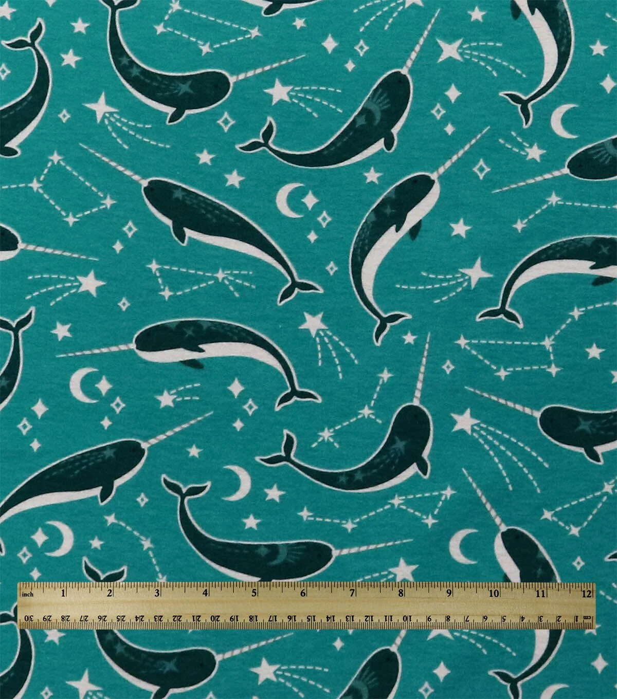 Narwhals on Blue Super Snuggle Flannel Fabric