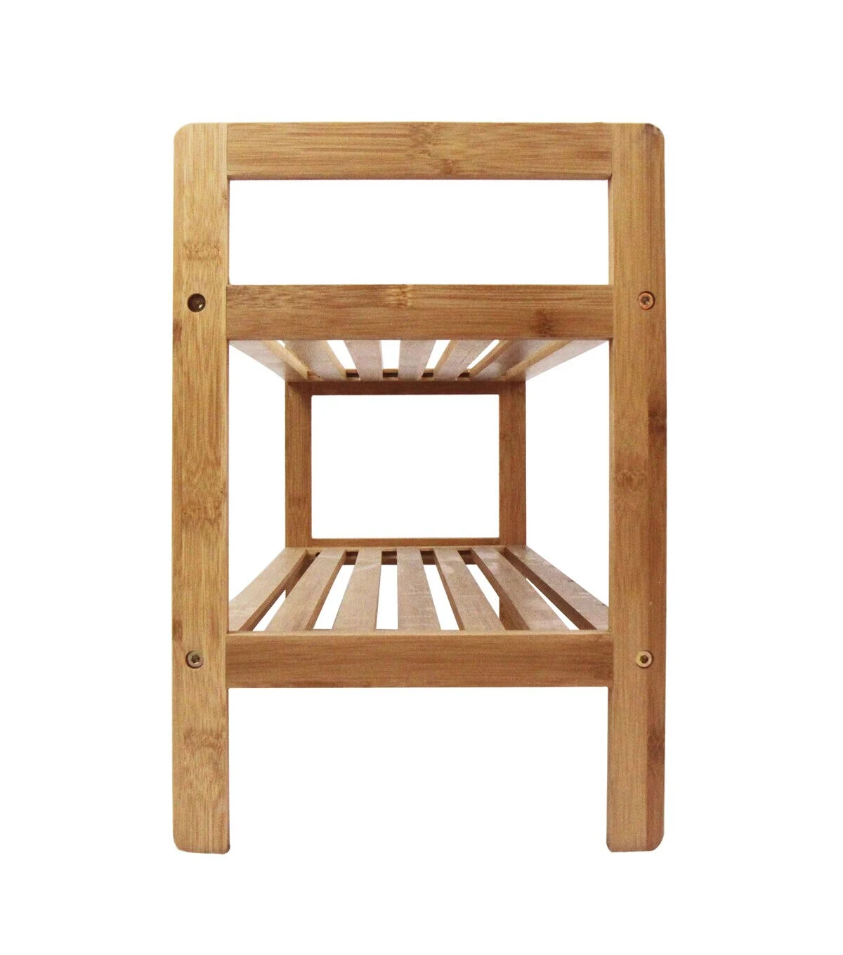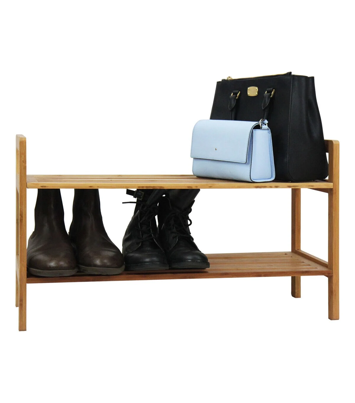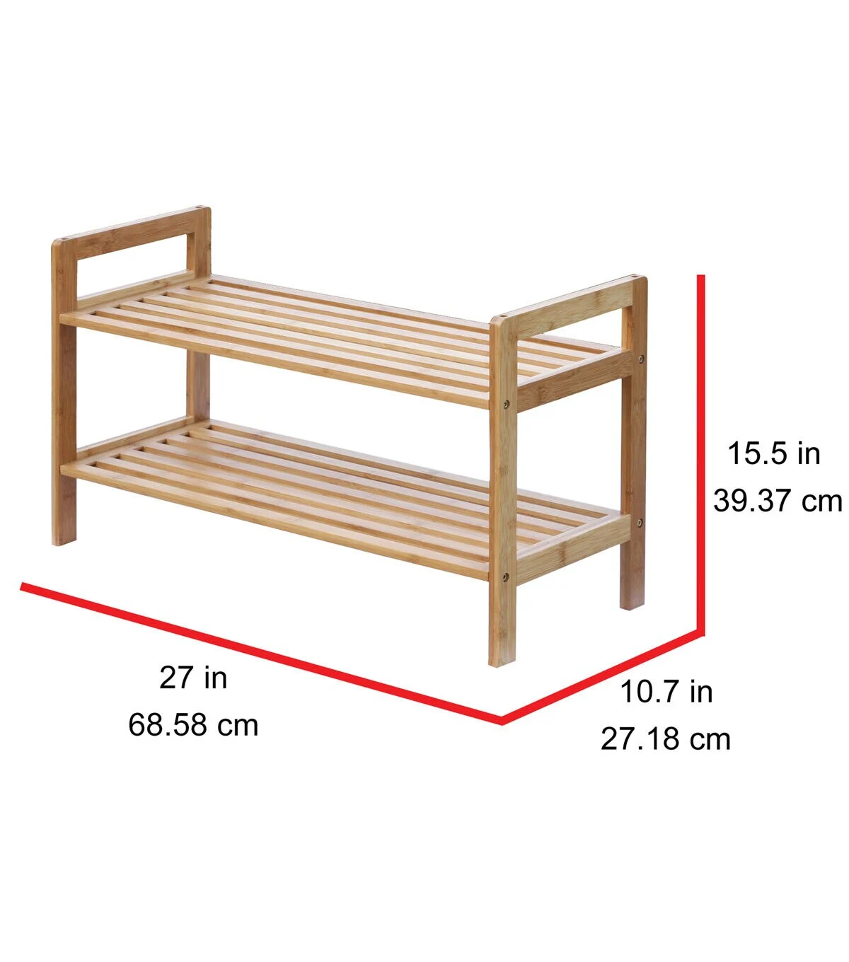 Keep your shoes organized with the modern and elegantly designed Oceanstar 2-Tier Bamboo Shoe Rack. The open slat on each tier allows air passage between the shoes to minimize odor from shoes. The shoe rack allows easy transportation with handles on each side. Its compact size is a perfect fit for any space in and out of the house. The contemporary look and design of the shoe rack will never look out-of-date and compliments any shoe types. It can fit up to 6-8 pairs of adult sized shoes