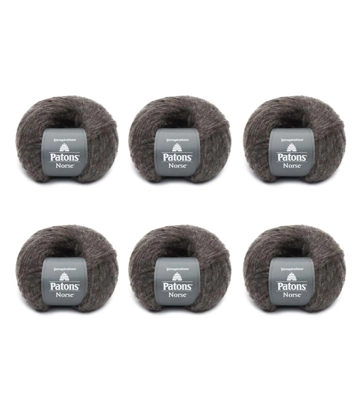 Patons Norse is a blended wool fiber yarn that finishes all your projects with a beautiful brushed effect and interesting intertwines of color. Shades in the collection are contemporary and warm with rich depth, owing to the yarn's unique finish. The 54% acrylic, 28% wool and 18% polyester fiber combination is blown into a strong core, creating a felted, heathered look with a premium feel. Both lightweight for comfort and super-bulky for warmth, it's an ideal yarn for attractive garments and accessories - from winter hats and scarves, to cozy shawls and stylish wraps. Norse is perfect for quick projects and is machine washable for easy-care convenience.