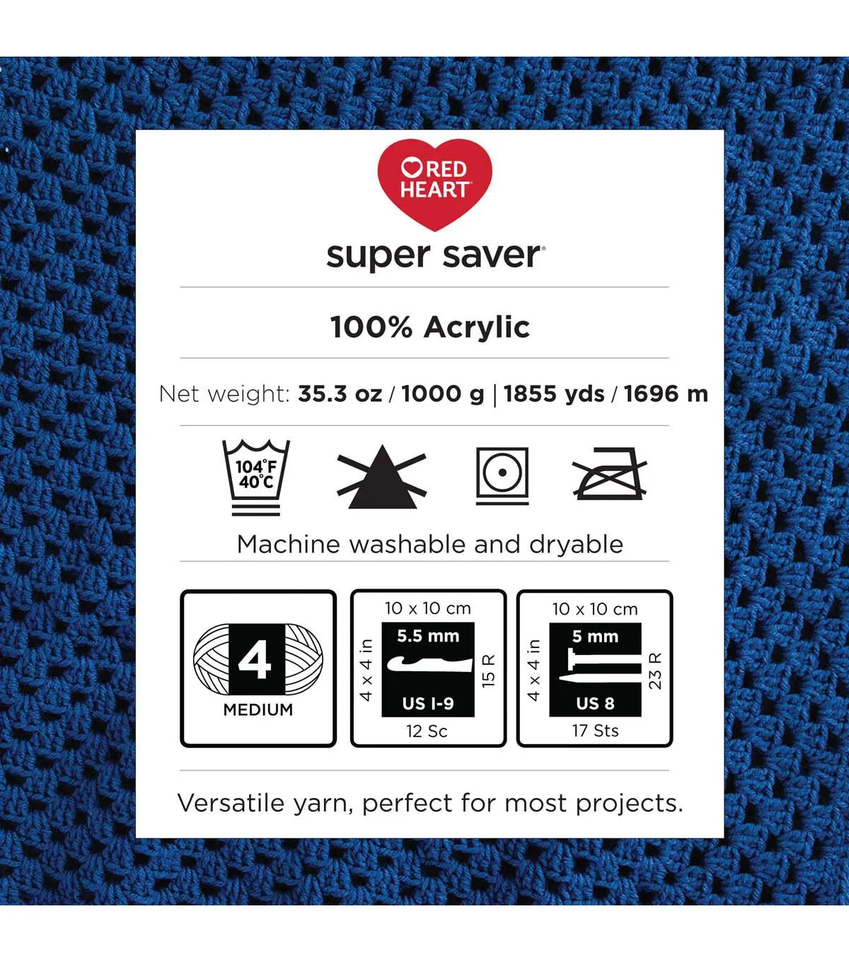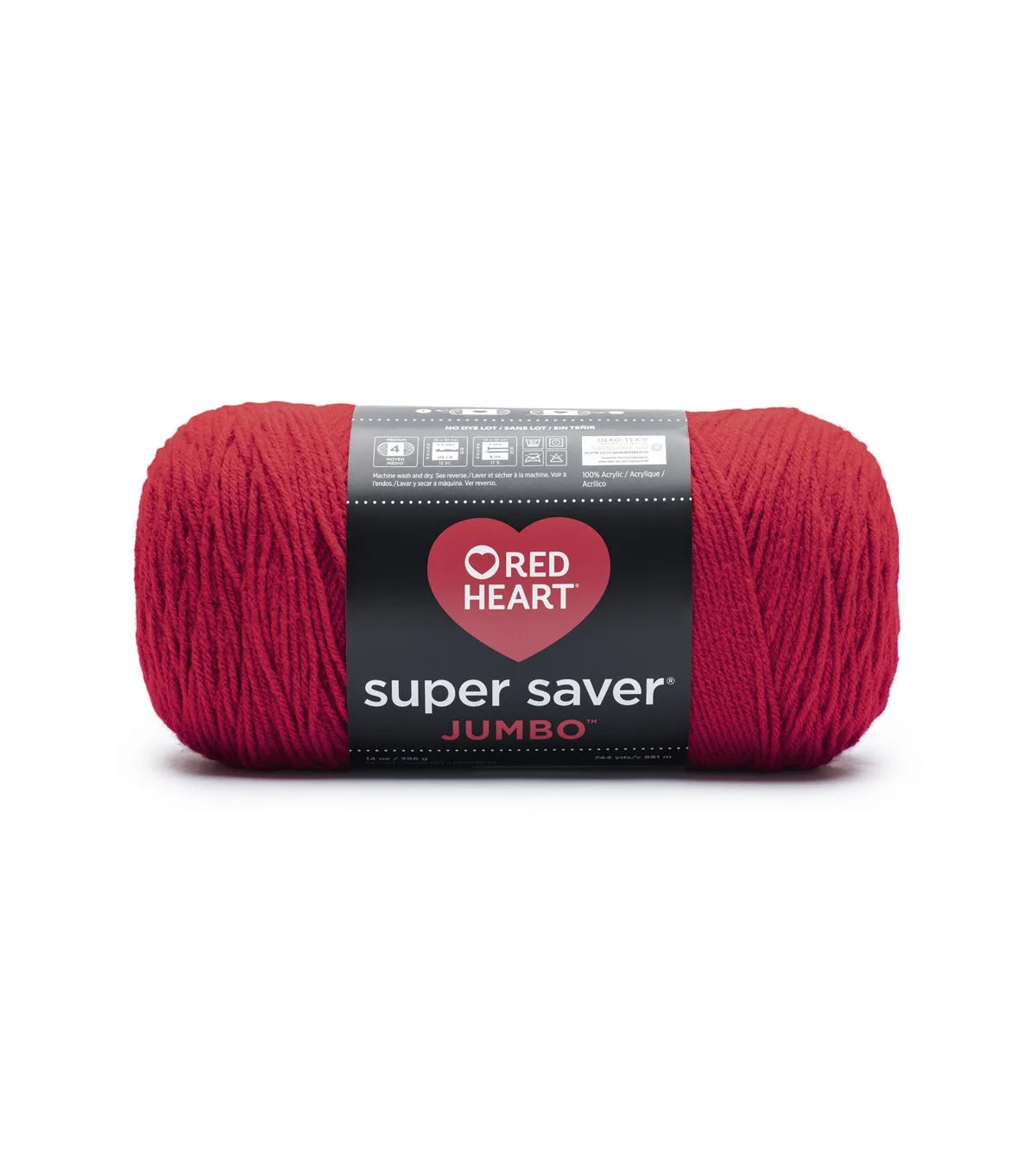 Red Heart Super Saver Jumbo yarn is the same Super Saver yarn you love in larger skeins. Each Super Saver Jumbo skein is the size of two skeins of the regular Super Saver, so you have half as many ends to weave in. Just like Super Saver, Super Saver Jumbo has no-dye-lot solids. Super Saver Jumbo is ideal for sweaters, afghans, and other projects requiring large quantities of yarn. This product holds the OEKO-TEX Standard 100 certification.