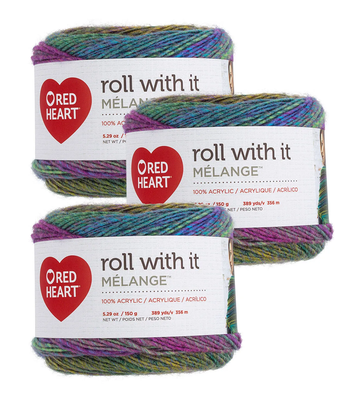 Red Heart Roll With It Melange 389yds Worsted Acrylic Yarn 3 Bundle