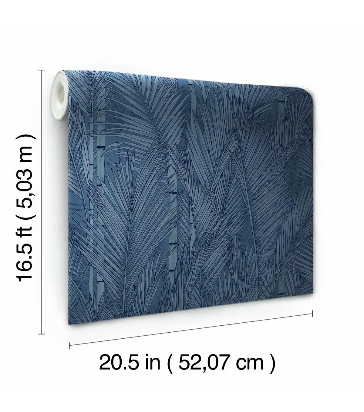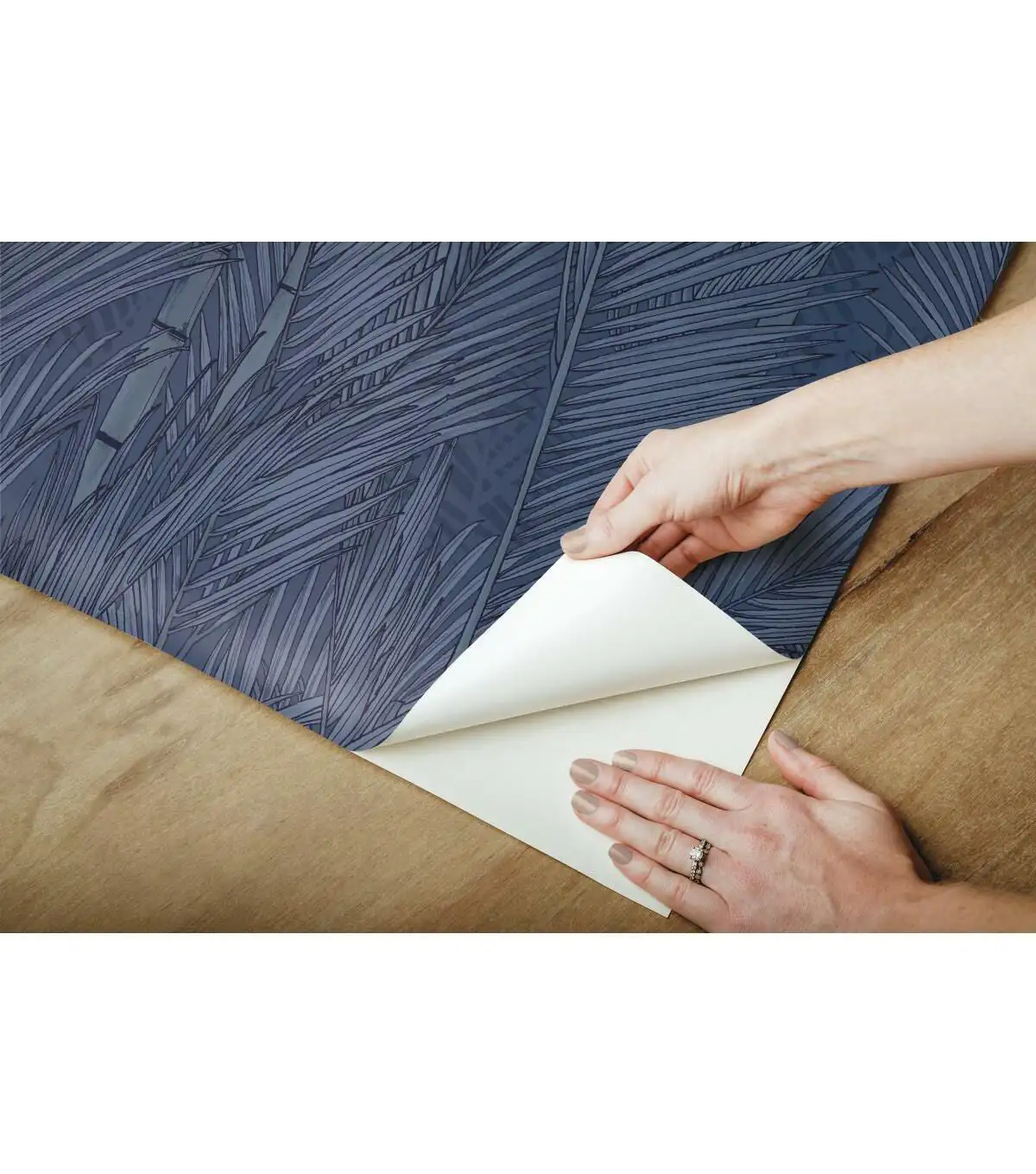 The gentle breezy dance of palm leaves resting side by side captures the essence of relaxed southern style in Swaying Fronds peel and stick wallpaper from RoomMates. Artistically rendered with fine lines and subtle tones of indigo blues, this wallpaper is a sophisticated backdrop to rooms with rattan furniture, sisal rugs and tropical decorative accents. Peel and stick wallpapers are an easy and affordable way to decorate; simply peel off the paper backing and smooth onto the wall. When it’s time to redecorate, remove in full strips with no remaining sticky residue or damage to walls.