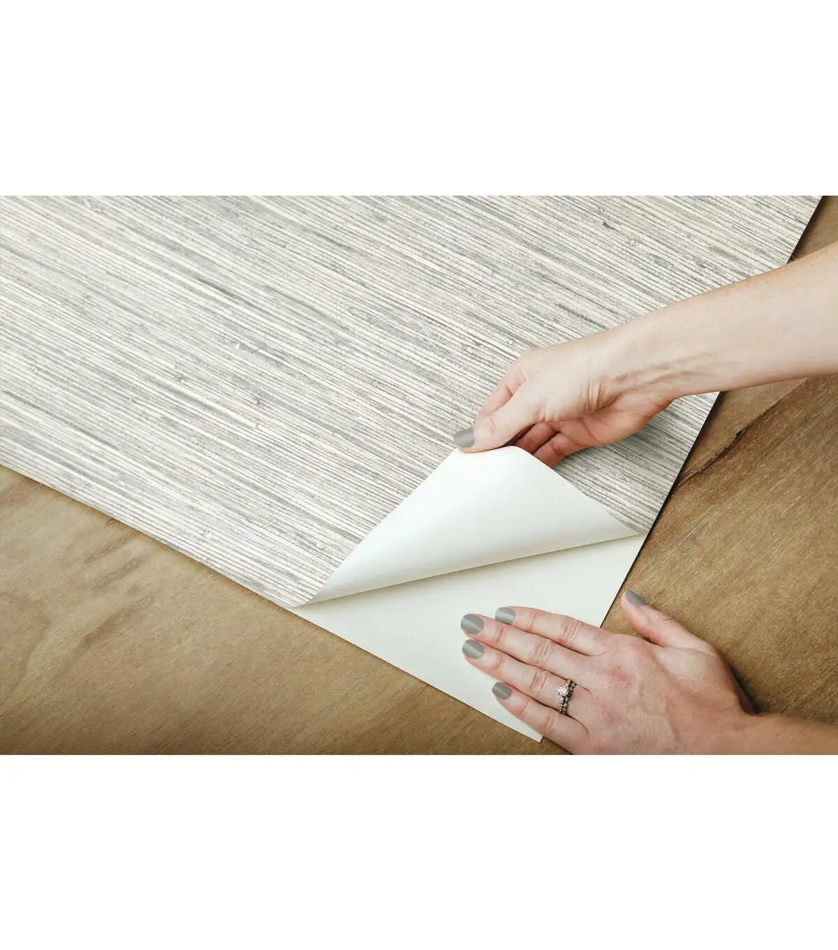 Getting the natural texture of grasscloth has never been easier or more affordable with RoomMates Decor revolutionary Peel and Stick Wallpaper! Designed with calming hues and printed to look textured even though there is none, transform any smooth flat surface or object in no time at all.