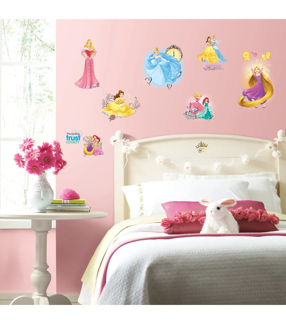 Celebrate the magic of friendship and princesses with Disney Princess Friendship Adventures Wall Decals by RoomMates Decor! Featuring all of your little girl's favorite Disney Princesses including Disney Princess Cinderella, Disney Princess Belle, Disney Princess Rapunzel, Disney Princess Aurora, and Disney Princess Ariel, decorate a room with princess style! A great way to bring your little girl's imagination to life, get the magical look in minutes. Just peel and stick! Completely safe for walls, remove and reposition each wall sticker as much as needed with damaging the surface!