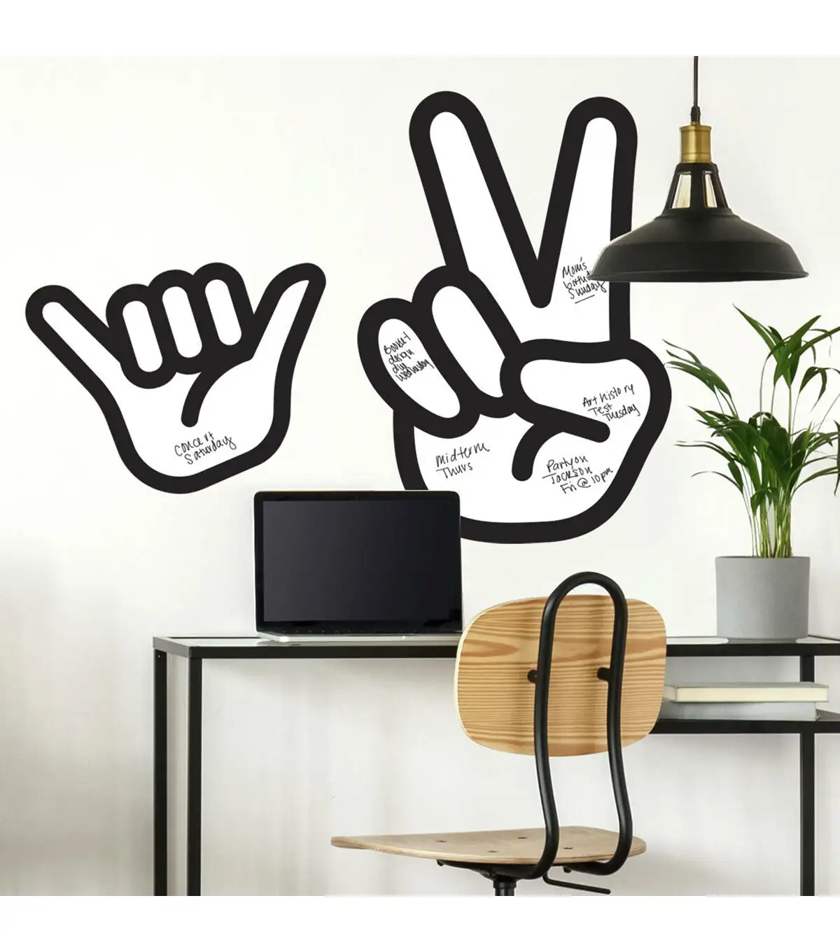 Get all the practicality of a dry erase board along with the style of decorative wall decals. A bold hand in the traditional peace sign and another in the surfer Shaka sign give your teen's room a carefree vibe. Wall decor can be simple, fun and practical. Use the dry erase decals to take note of important events or to write positive affirmations. This teen wall decor is reusable, removable and does not leave behind sticky residue. Forget wall damage with removable wall decals. The wall stickers not only have an easy installation but also are easy to remove.