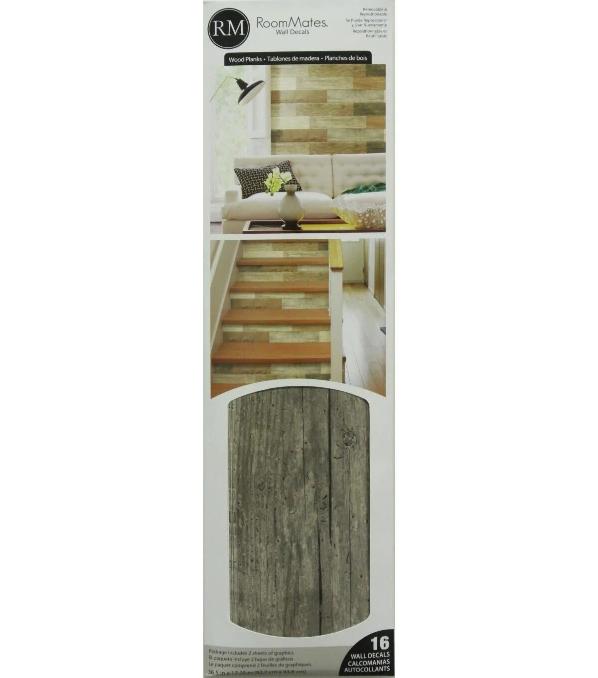 Update a space with RoomMates Distressed Barn Wood Plank Peel and Stick Giant Wall Decals. Simply peel and stick to any smooth, flat surface for instant results. Remove, reposition and reuse as often as needed. No sticky residue is left behind. Walls stay clean every time. ?Add personality to your walls today with RoomMates Wall Decals!