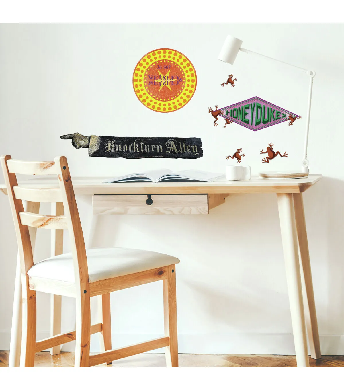 Decorate walls with Harry Potter Signs Peel And Stick Wall Decals by RoomMates. Complete with 21 decals, this wall sticker set is a fun and creative way to transform any room in seconds. To apply, simply peel and stick decals to any smooth, flat surface. Remove, reposition and reuse as often as needed. Created with high quality vinyl that's made to last, walls stay completely safe, and sticky residue is never left behind. It's fast, fun and affordable wall decor at it's best.