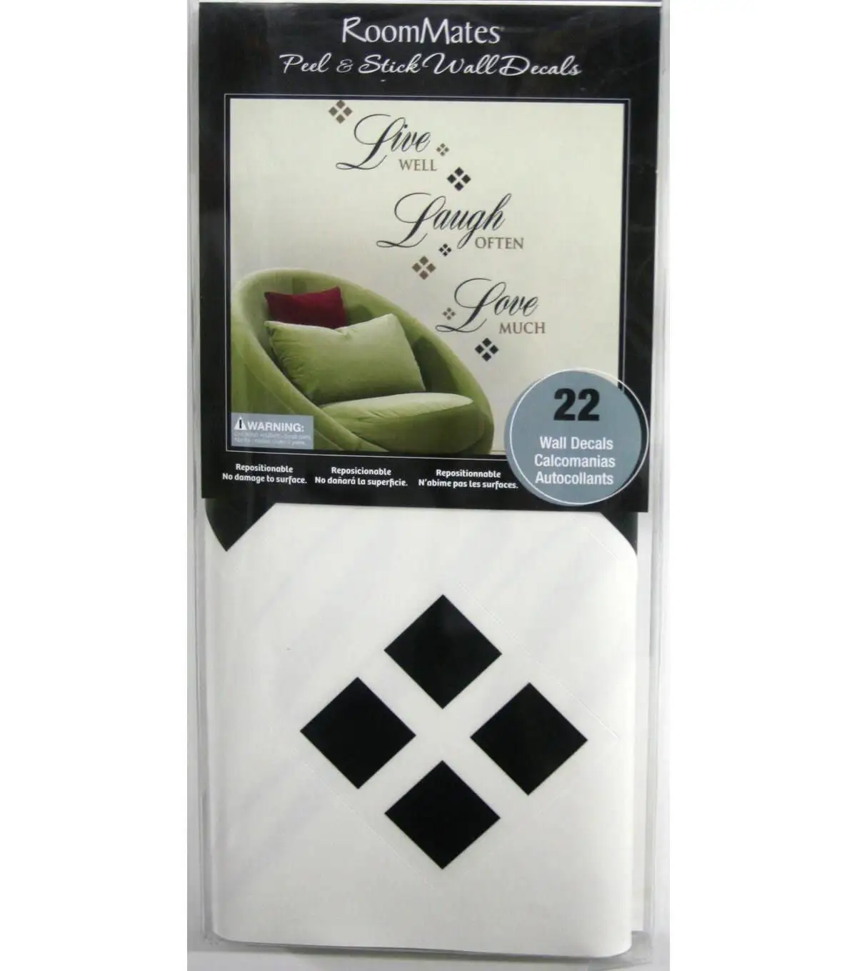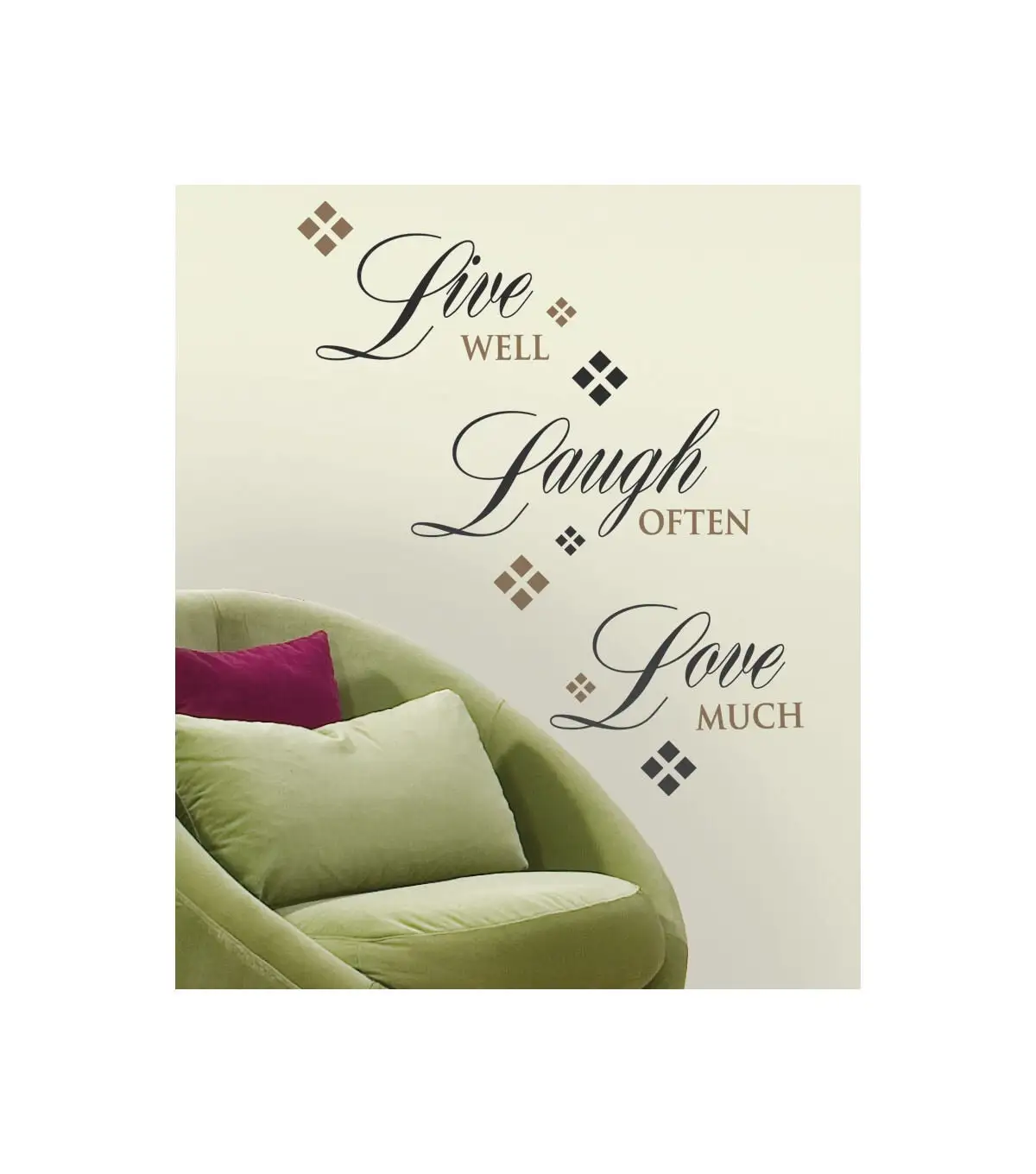 Encourage the things that matter most with these 'live well, laugh often, love much' wall decals. Applying is easy: just peel and stick. Perfect for the living room, bedroom, or hallways'nearly anywhere that a flat surface is available. And if you ever need to move things around, there's no sticky residue to worry about.