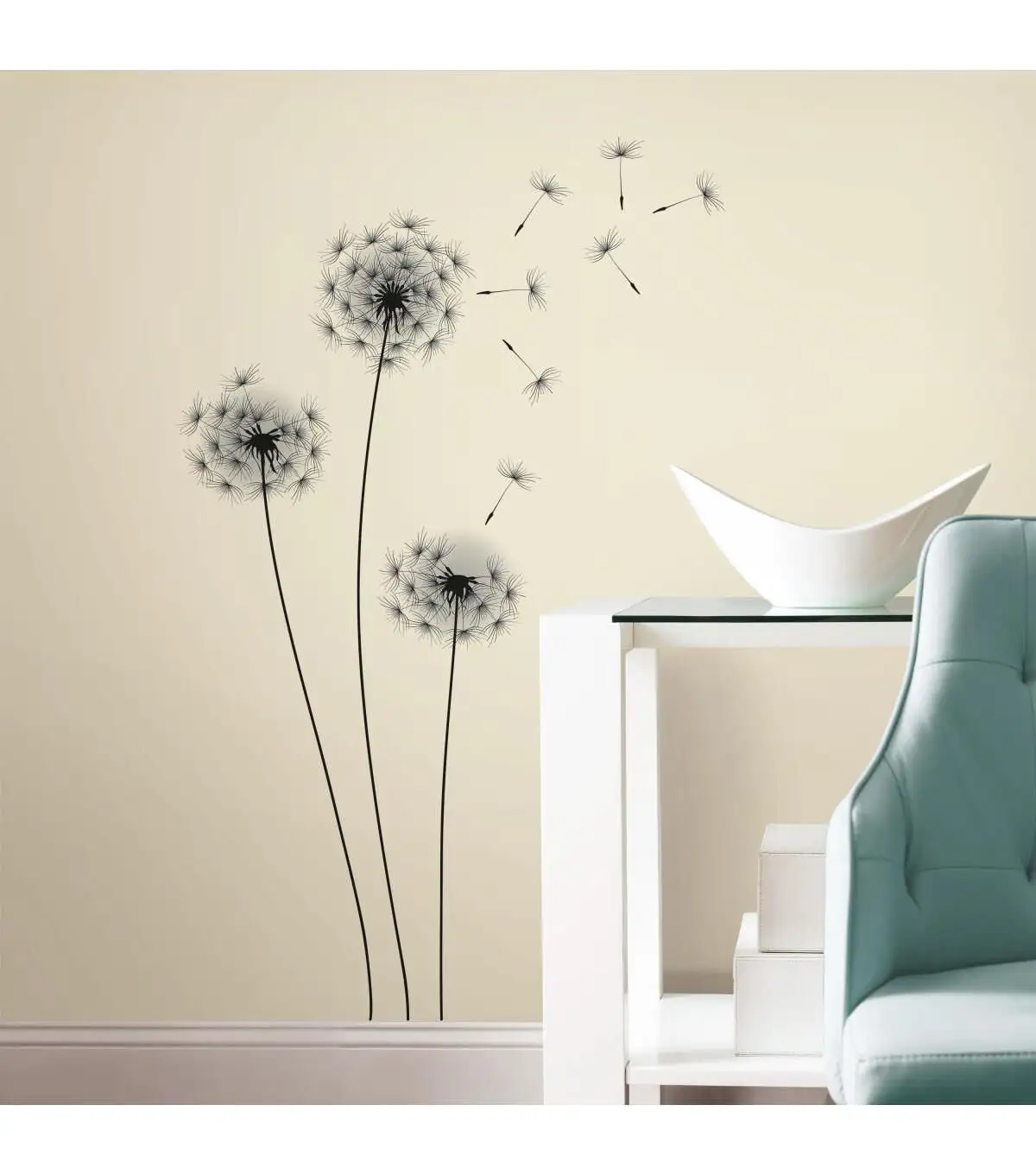 Add a dramatic touch to any space with this whimsical dandelion giant wall decal. Removable and repositionable, the dandelions can be assembled on to any smooth surface. Great for any dorm room or apartment, simply peel the decal from the liner and stick. It's that easy!
