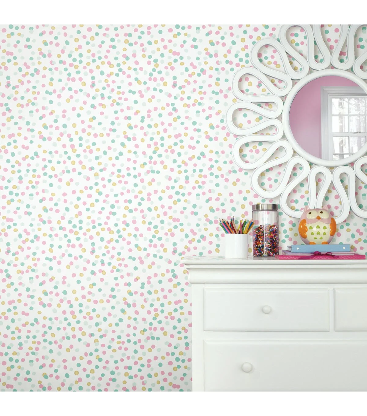 Funky and fresh, transform your space with Confetti Peel and Stick Wallpaper by RoomMates. Offering a fun and fresh way to decorate, Peel and Stick Wallpaper is printed on high quality vinyl that is repositionable and removable, making it a go-to, budget-friendly choice for both temporary and permanent projects. Perfect for accent walls, furniture, backsplashes, DIY decor, and more, simply peel and stick to install. Completely easy, create endless style-worthy possibilities with RoomMates Peel and Stick Wallpaper.