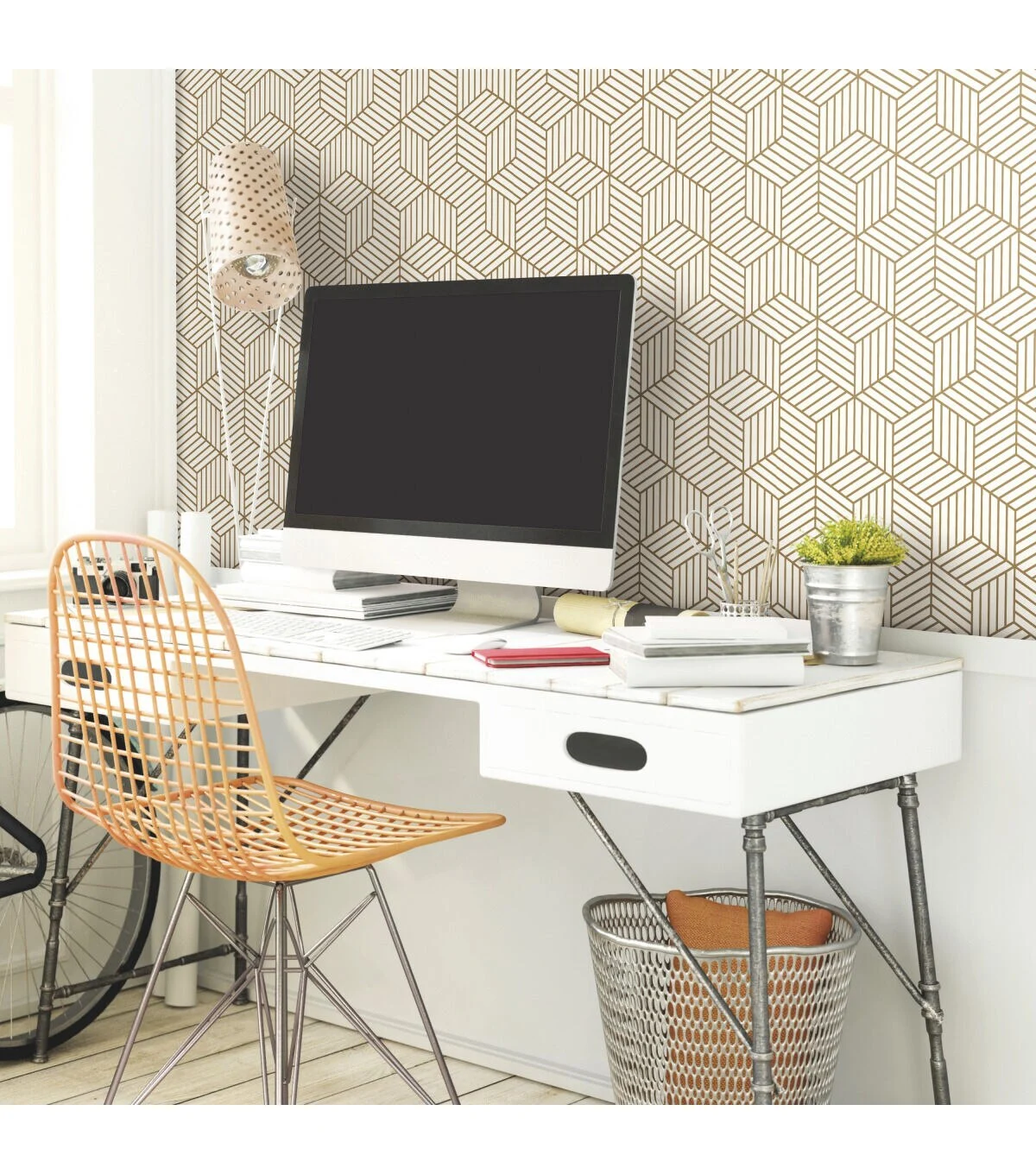 Add bold geometrics to your space with Stripped Hexagon White and Gold Peel and Stick Wallpaper by RoomMates. Offering a fun and fresh way to decorate, Peel and Stick Wallpaper is printed on high quality vinyl that is repositionable and removable, making it a go-to, budget-friendly choice for both temporary and permanent projects. Perfect for accent walls, furniture, backsplashes, DIY decor, and more, simply peel and stick to install. Completely easy, create endless style-worthy possibilities with RoomMates Peel and Stick Wallpaper.