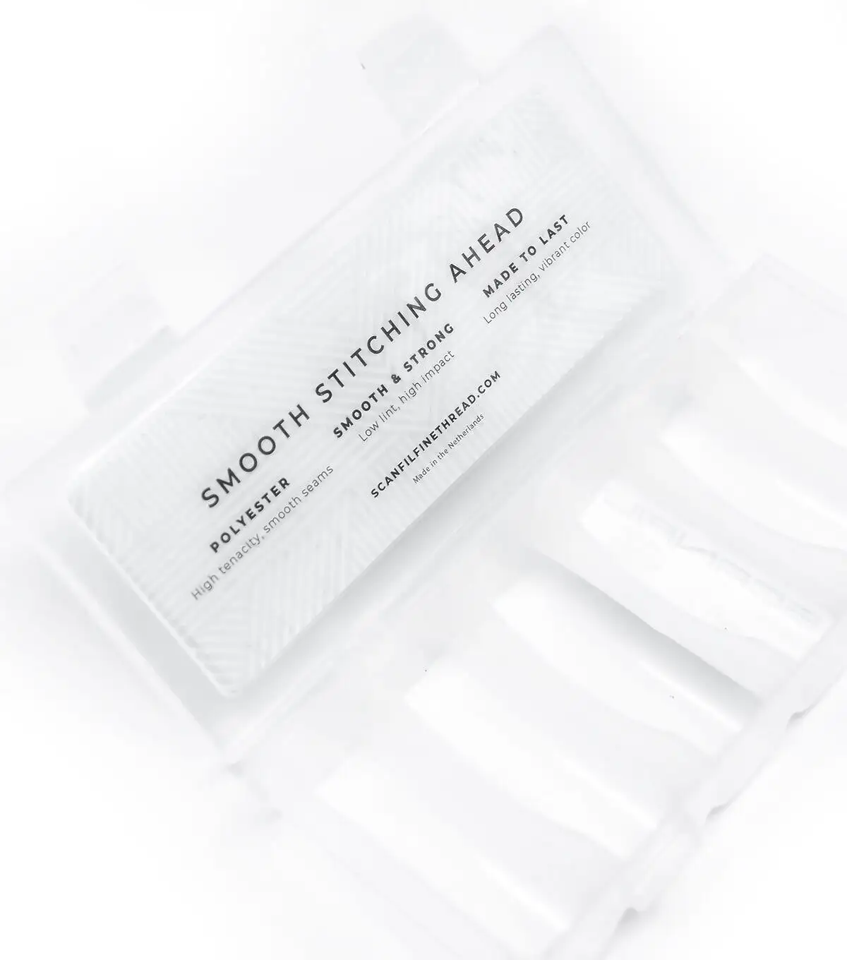 - PREMIUM SEWING THREAD: SCANFIL All Purpose Sewing thread is premium quality 100% Polyester No. 100 thread produced with high tenacity fiber and 500 yards precision wound on high performance European cross wound spools. Very low in lint, UV resistant and color fast. This translates into a hassle free sewing experience, smooth and strong seams that are made to last wash after wash.