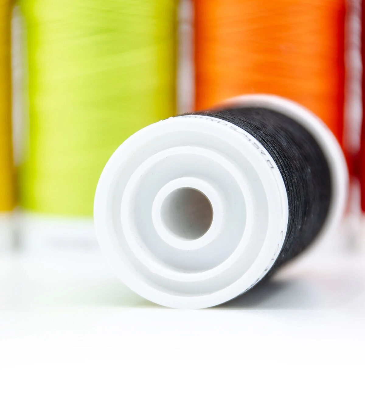 - SET OF 6 + STORAGE BOX: This 6-Pack features 6 spools each wound with 500 yards of premium high tenacity polyester sewing thread, the preferred quality for sewing, crafting and home decor, plus a reusable storage box with 6 compartment for organizing small items.