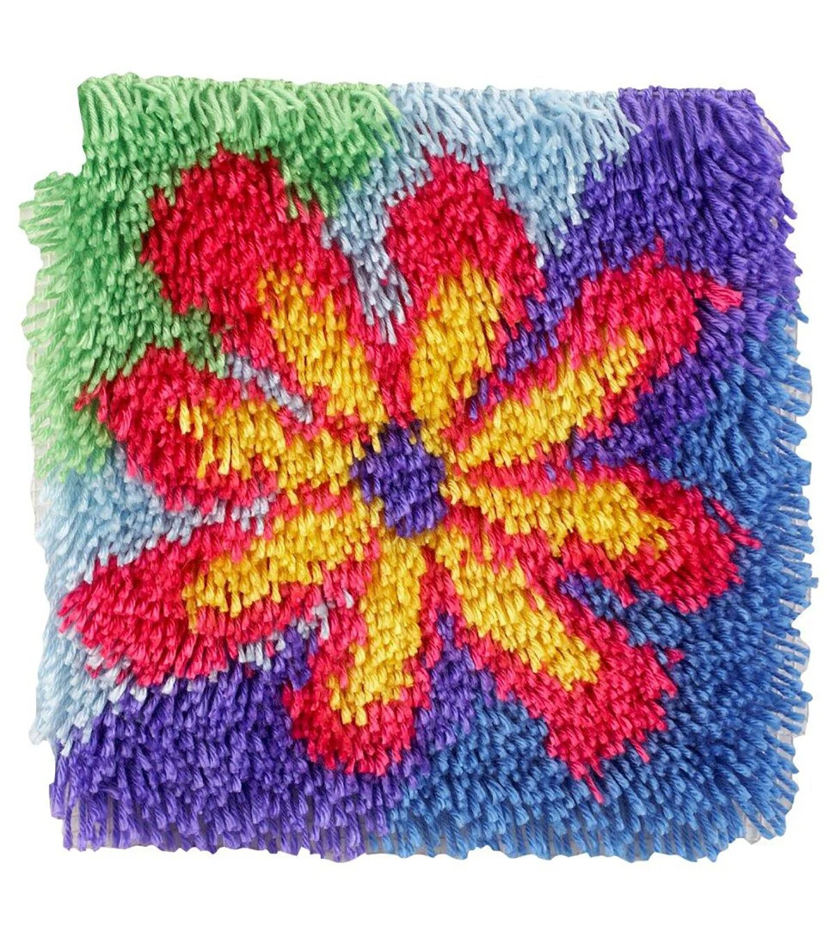 Latch Hook is a craft for all ages and skill levels. Small kits are ideal for beginners or quick weekend projects. Shaggy kits feature Caron Simply Soft yarn and longer yarn strands for a soft, lush effect. Finished kits can be made into pillows, wall hangings and more. Kits include: pre-cut acrylic yarn, illustrated instructions with an easy-to-follow chart and 3.75 gauge canvas.Latch hook tool not included.