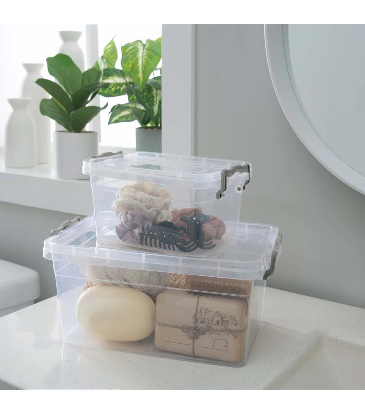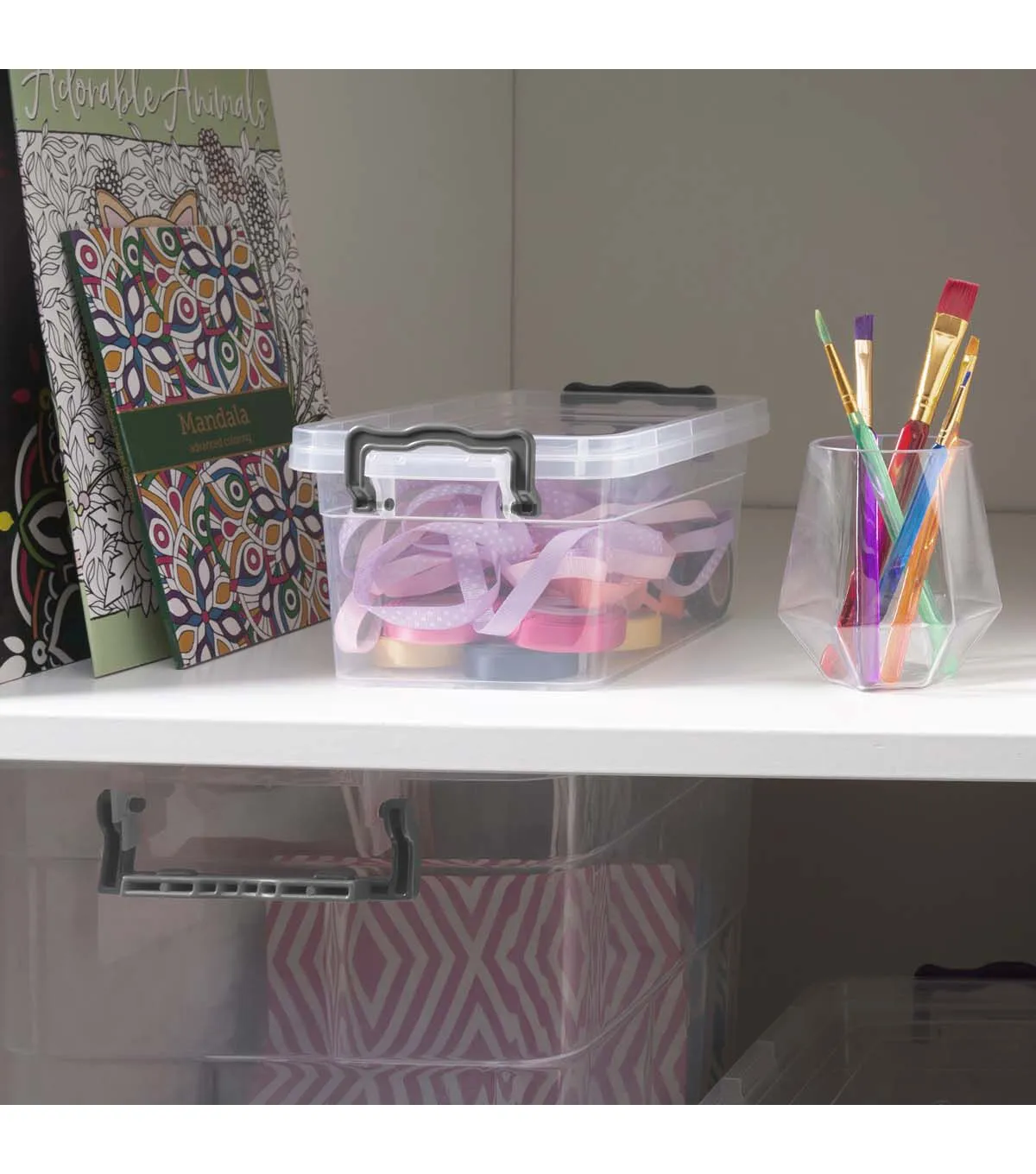 Organize Your Life with Simplify 1.75 Liter Clear Stackable Storage Bin With Carrying Handles