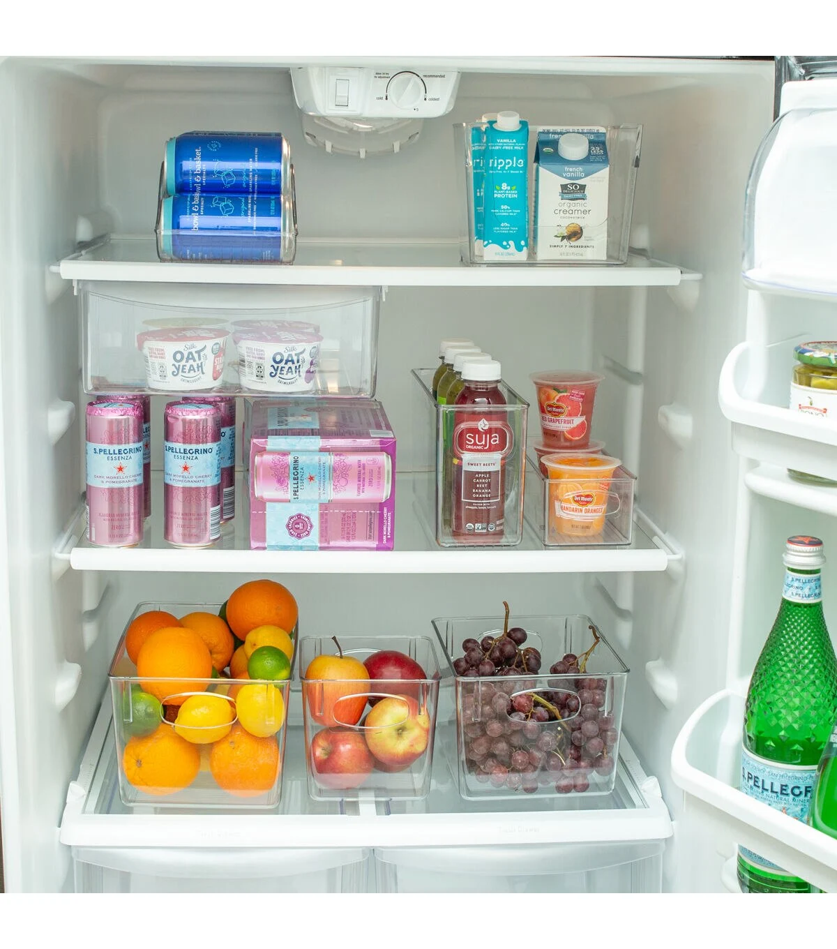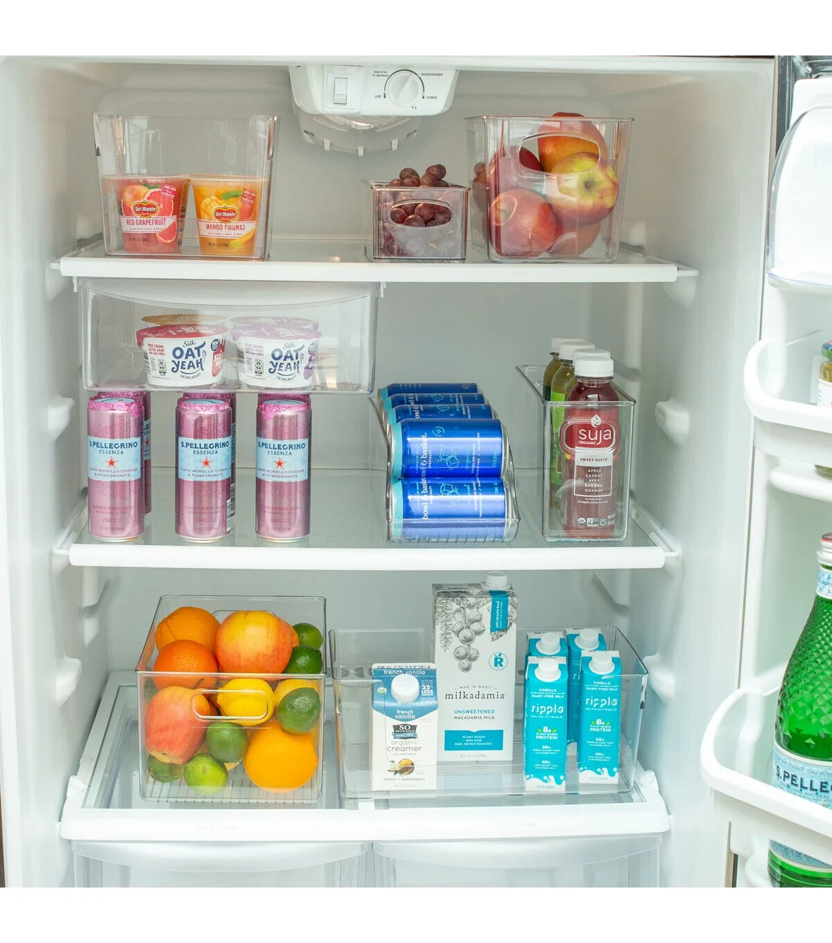 The Simplify Medium Vertical Organizer is the best kitchen storage and organization solution. This bin is perfect for cabinet and refrigerator organization. You can store canned foods in it without worrying about them falling over when you open your cabinet or drawer. Or you can store fruits, vegetables, and yogurts. in your fridge. The handle cut outs make it easy to lift and slide the bin. The clear design makes items inside visible and easy to find. You can also keep it in your office to store office supplies. The perfect storage solution for any room.
