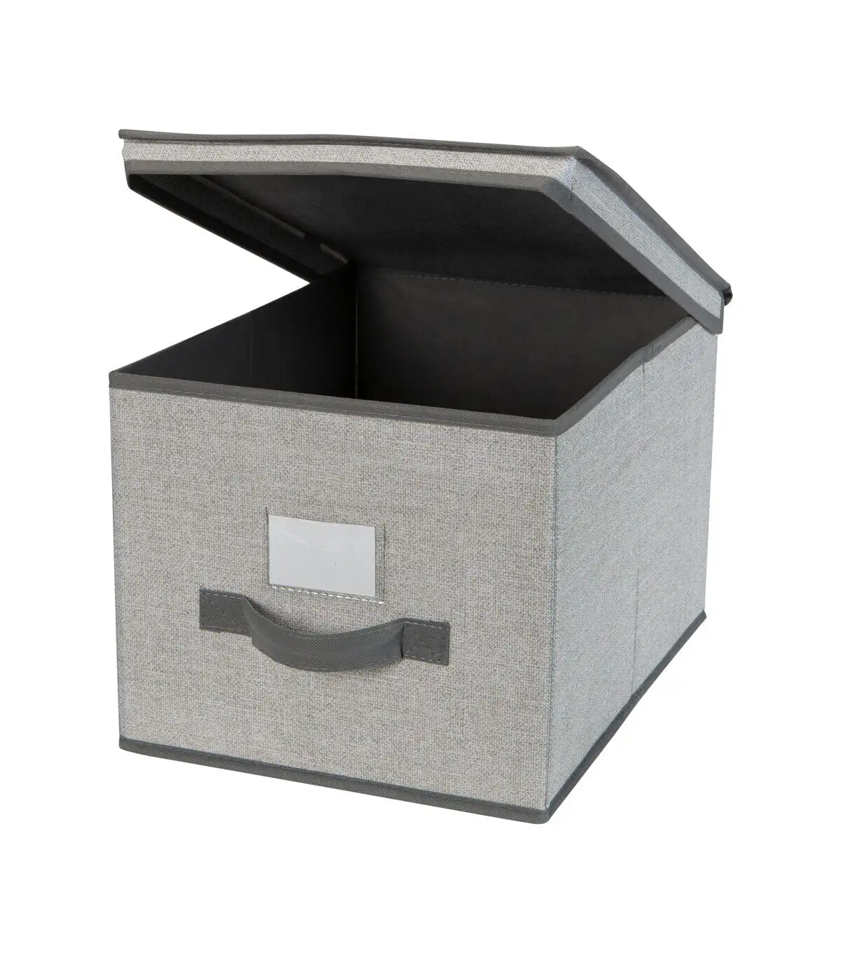 Just unfold this stylish storage organizer to safely store and organize your favorite items. Made of breathable non-woven material, it will keep your items safe while having your room neatly organized. It features a helpful handle and reinforced sides, this lidded storage box is sturdy enough to stack, so you get the most use of every space in your office or home.