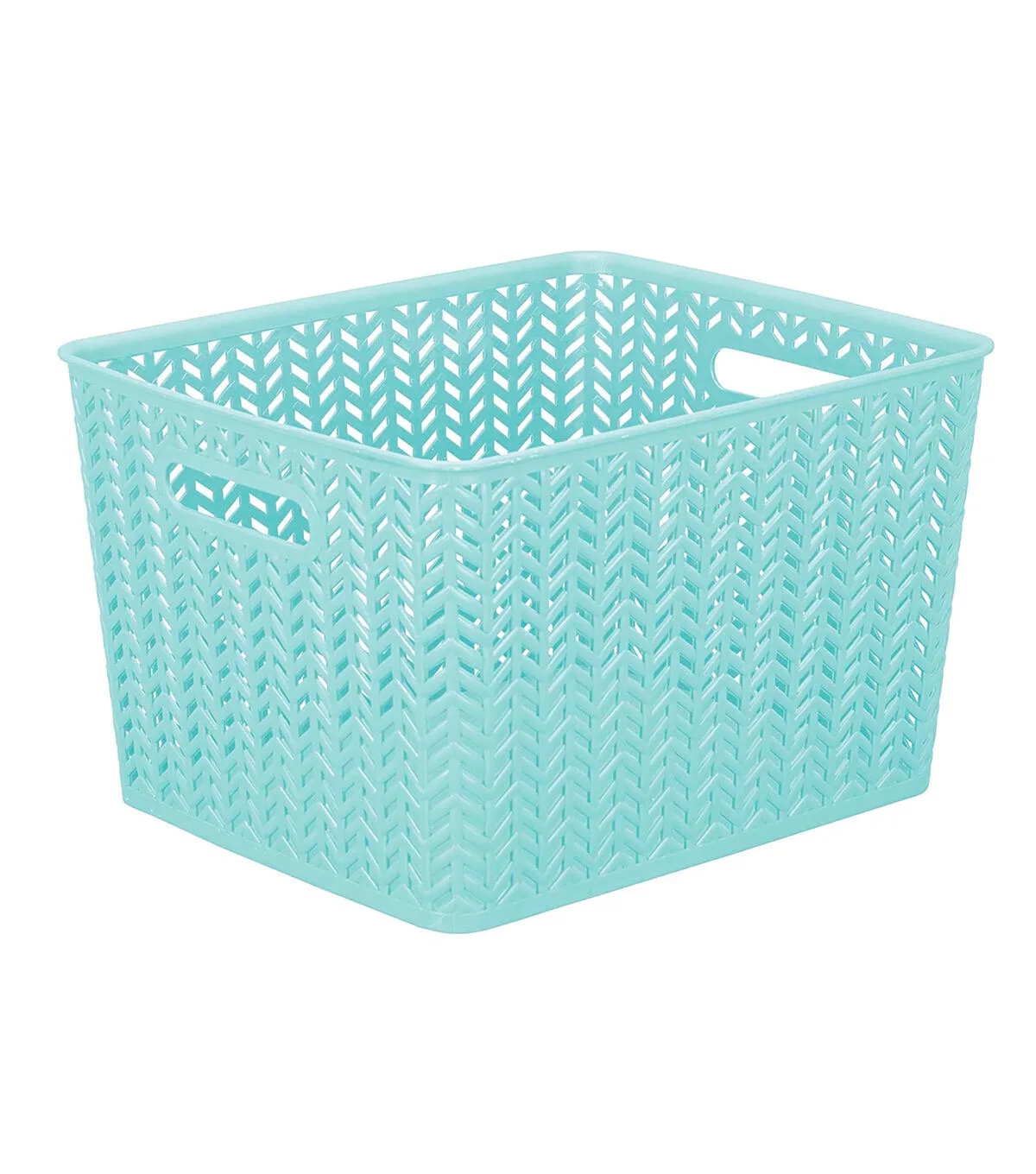 Simplify'sHerringbone Storage Bin has a unique wicker design and is made of sturdy polypropylene plastic. 2 sturdy open handles makes it easy to carry Bin around from one place to another. It has a lightweight design and holds a multitude of items, organizing and de-cluttering homes. Wide selection of colors to fit any setting.