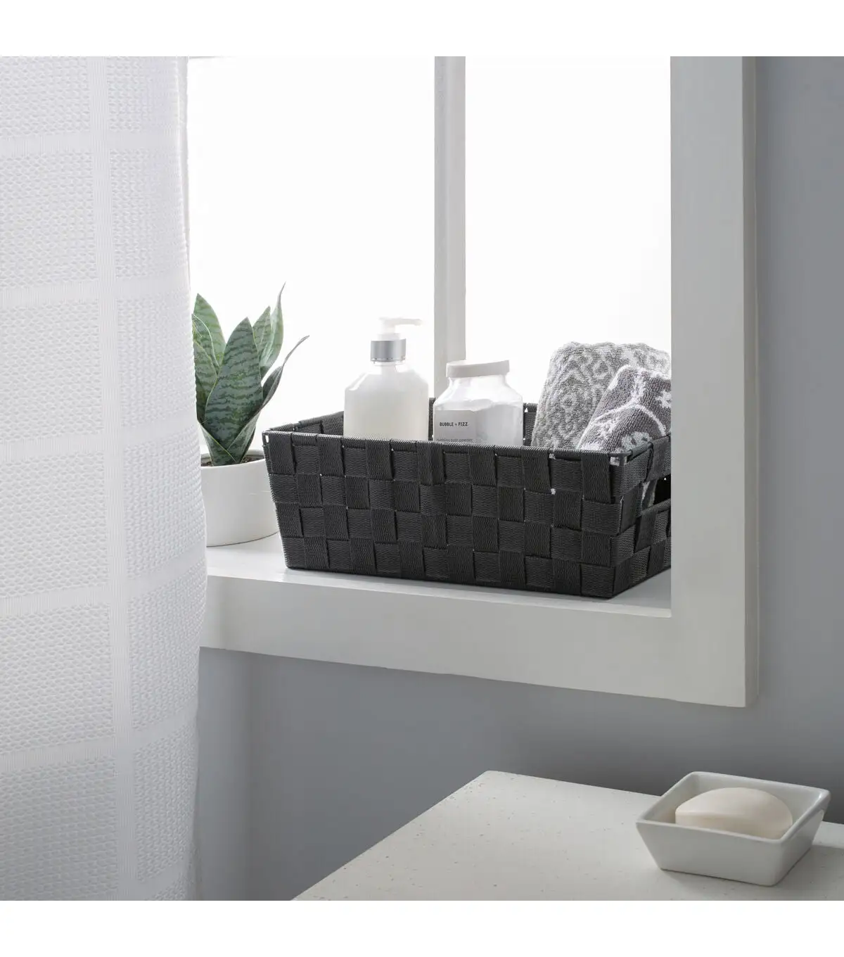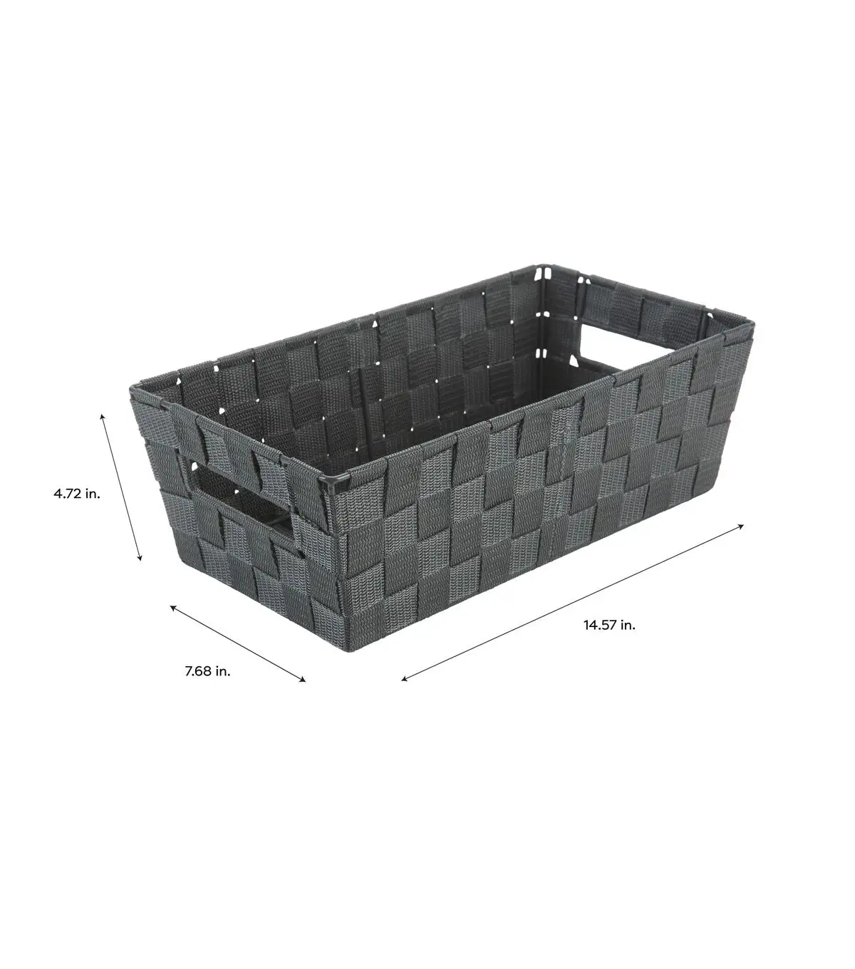 This Simplify Woven Strap Shelf Tote makes organizing easy! Acts as a great storage accessory for all your home needs. Fits perfectly on your shelf, in your closet or in any other room. Acts as a great storage accessory for all your home needs. Store clothes, accessories, or more inside. It is great for keeping items safe and hidden inside. The design is lightweight and durable, and the handles make it easy to carry. These totes are cute and stylish and the perfect addition to any home storage solution.