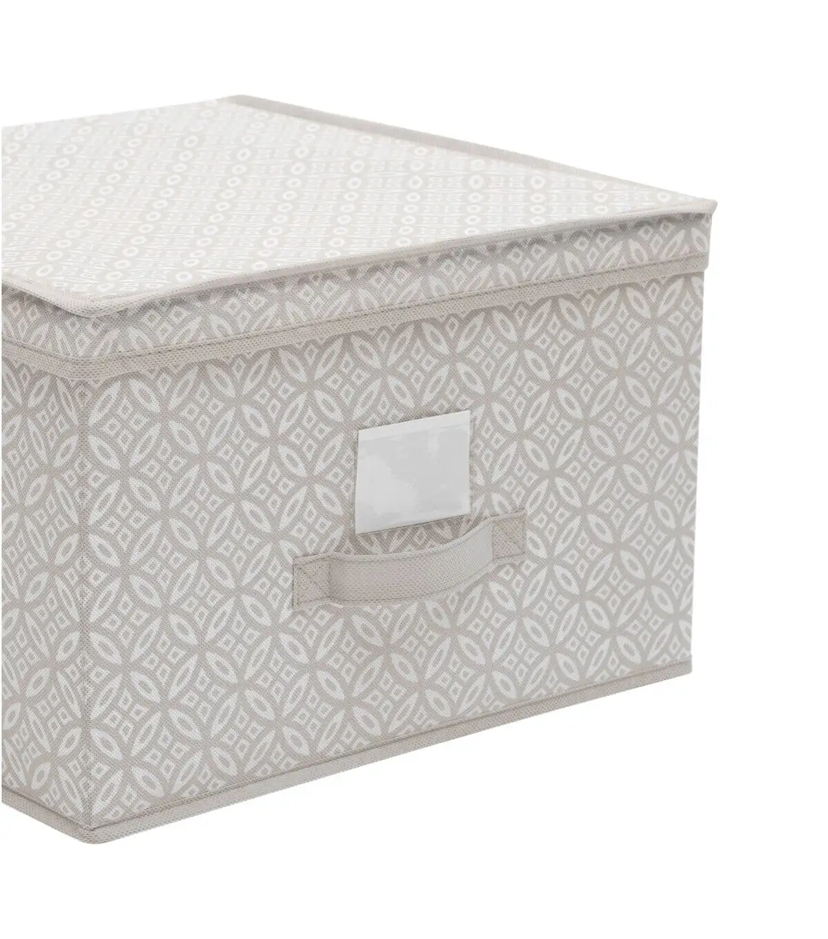 Just unfold the Simplify Boho Storage Box to safely store and organize your favorite items. Made of breathable non-woven material, it will keep your items safe while having your room neatly organized. It features a helpful handle and reinforced sides, this lidded storage box is sturdy enough to stack, so you get the most use of every space in your office or home.