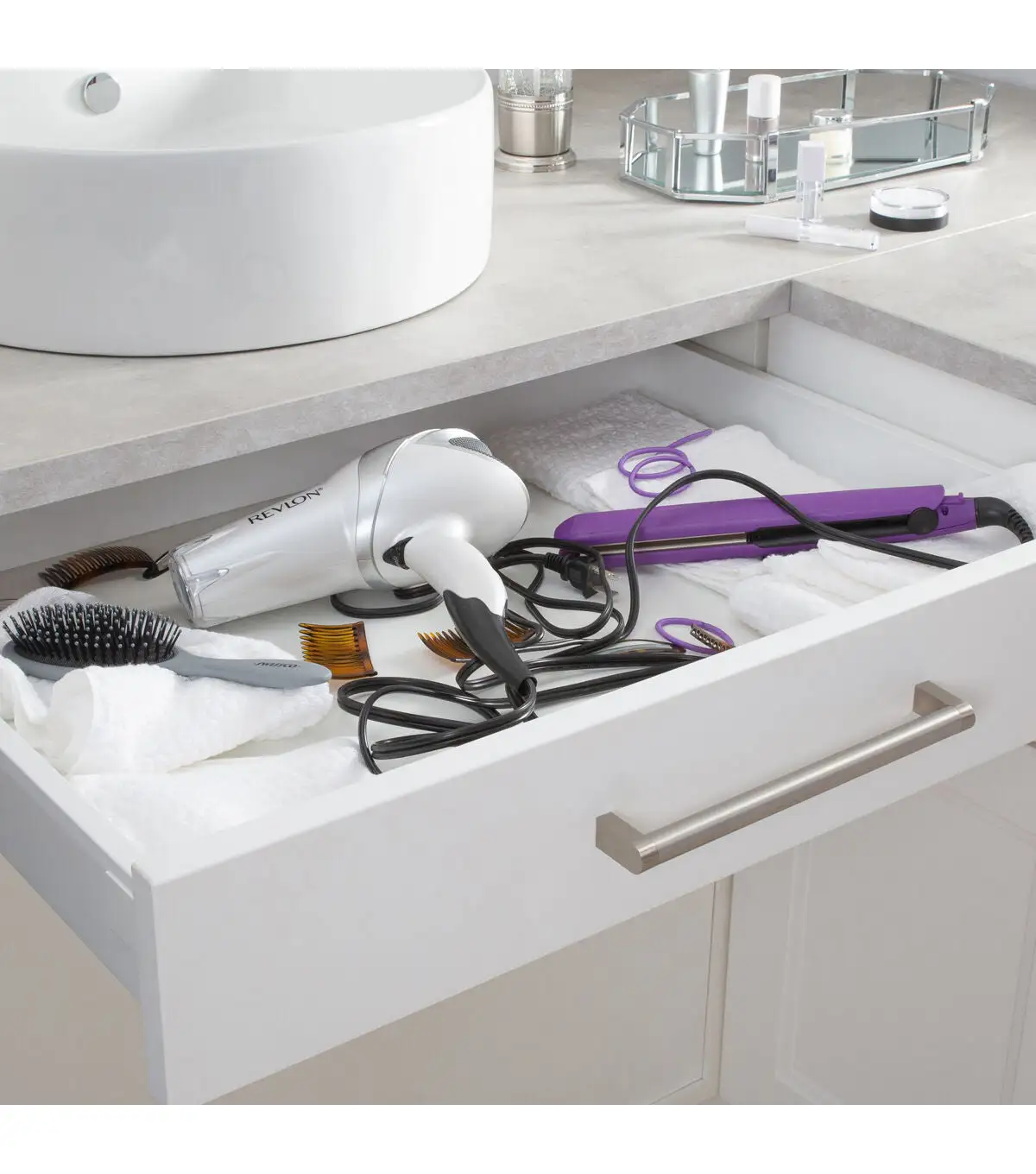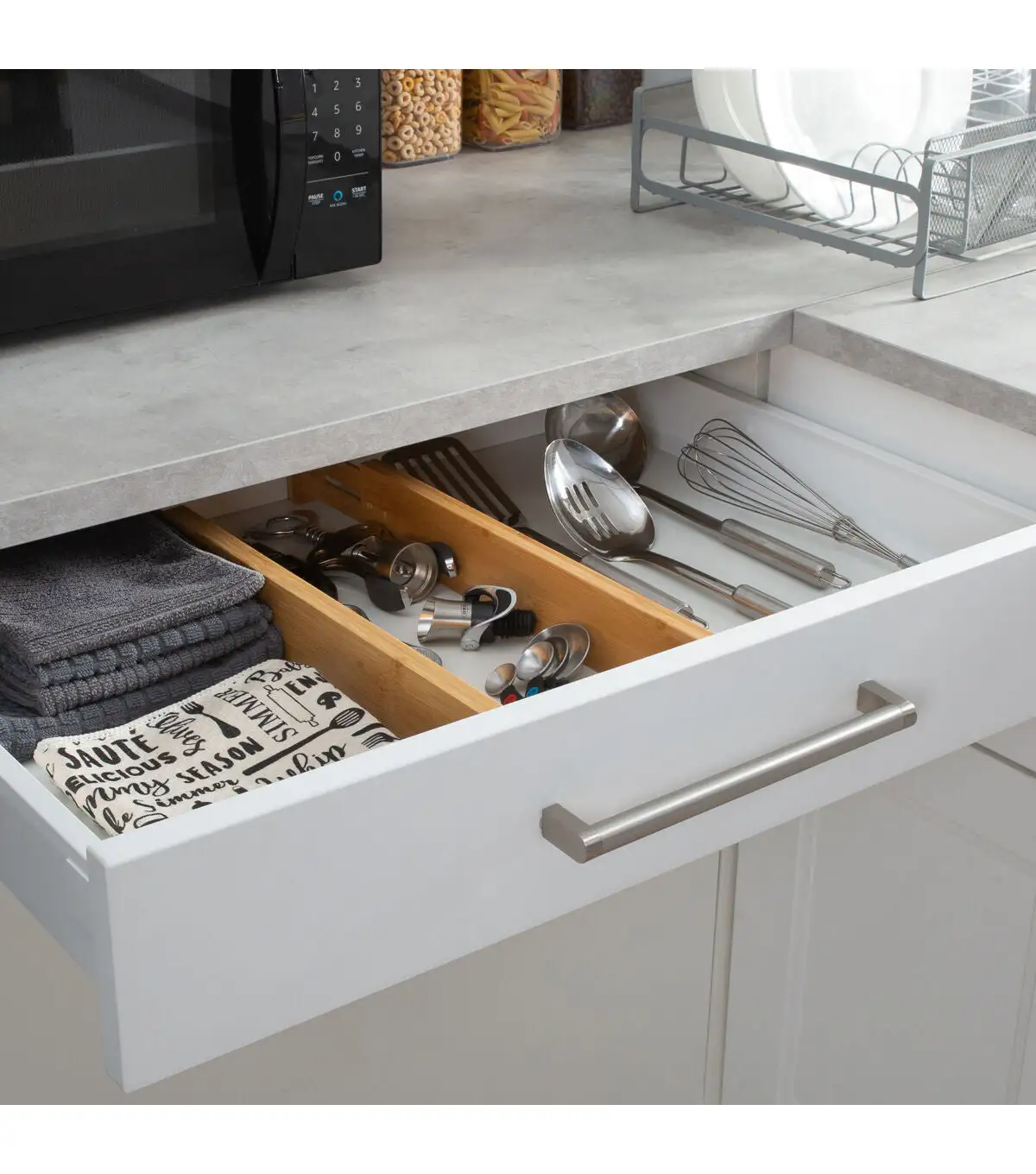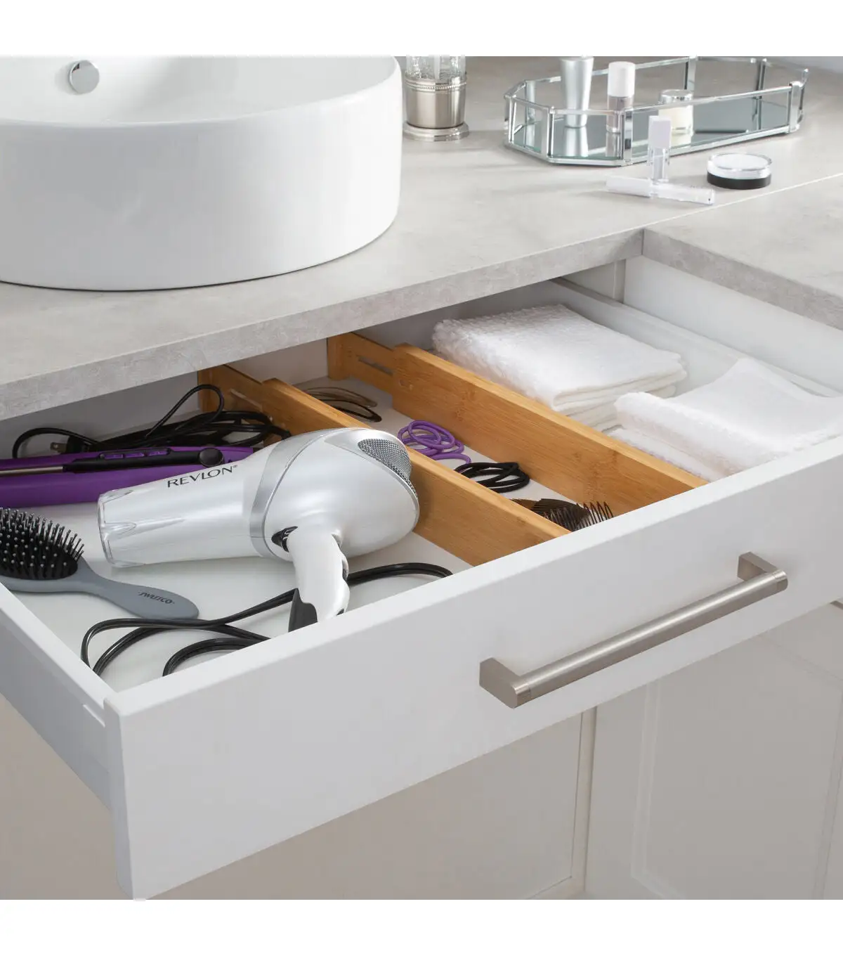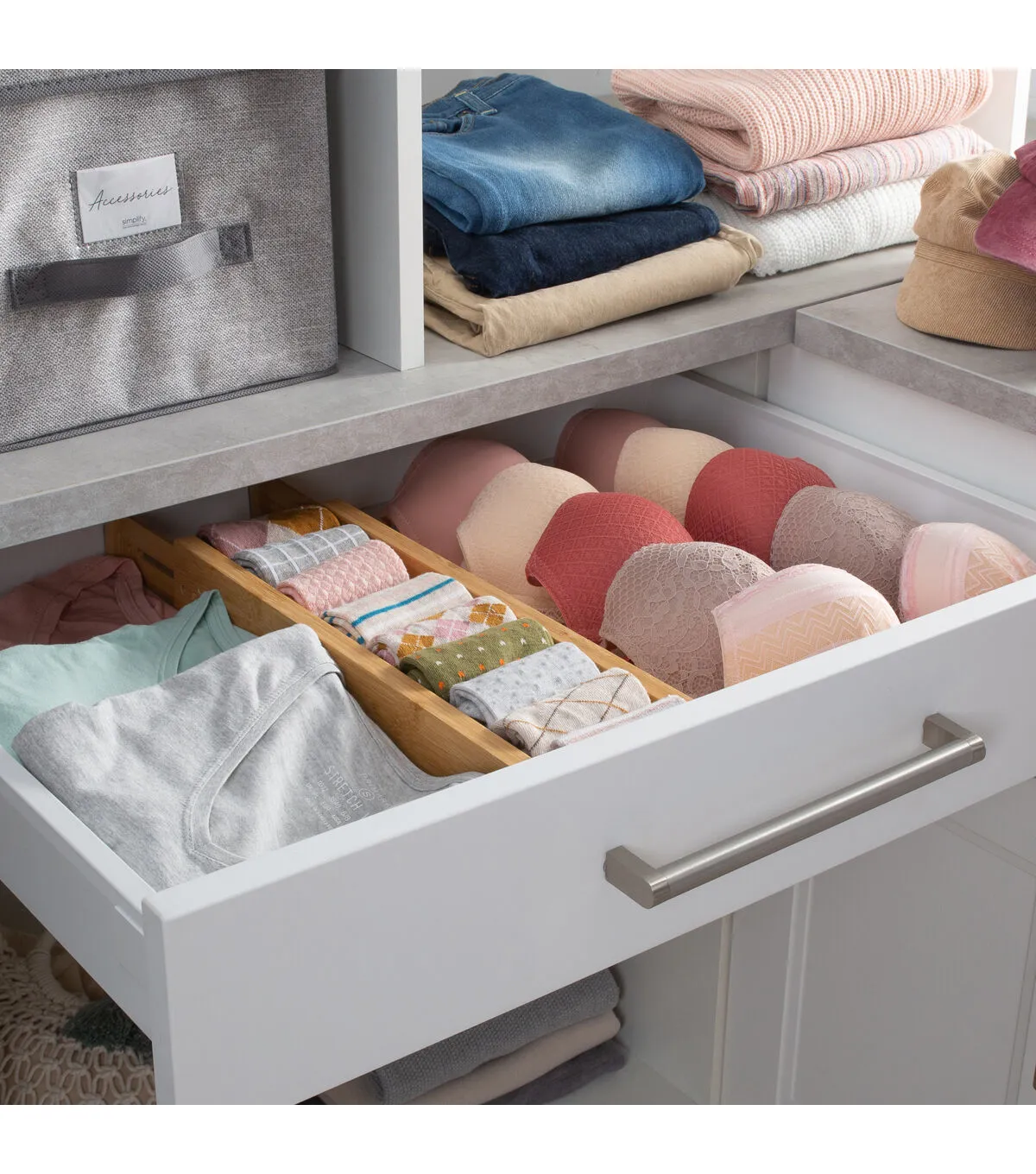 Keep your drawers organized with the Simplify Adjustable Drawer Dividers. It is the perfect solution for your messy drawer. The spring loaded, adjustable dividers allow you to customize drawer compartments in your kitchen, bathroom, or bedroom. Organize kitchen supplies, clothes, or accessories so you can always find what you are looking for. Install with ease and start your organizing today!