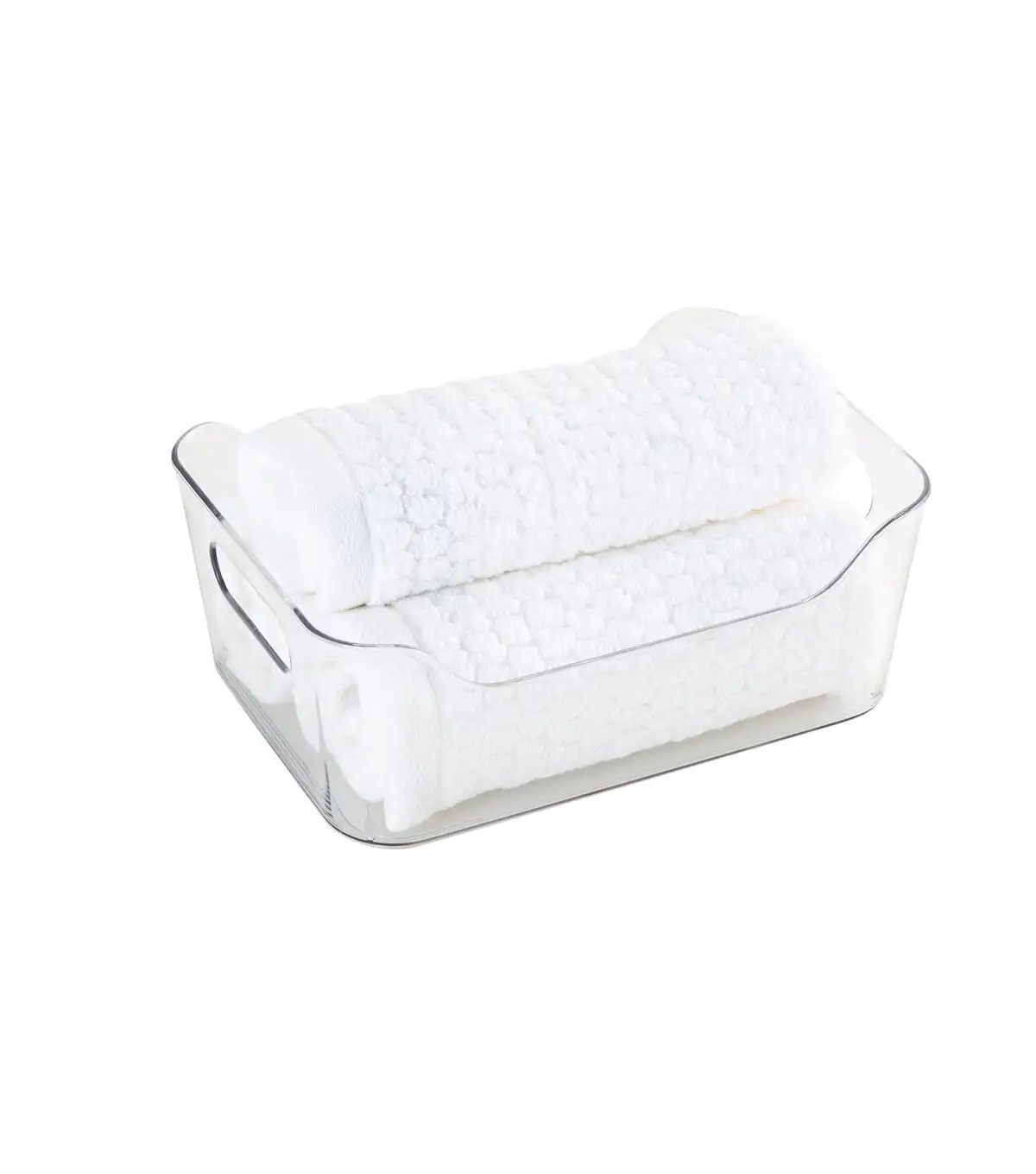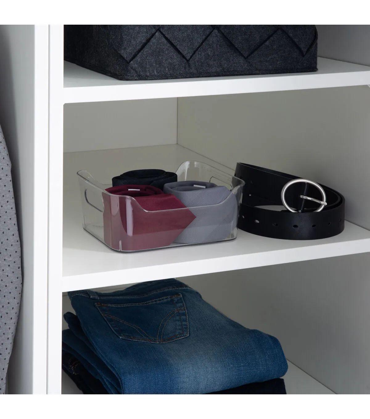 The Simplify 3 Pack Small Storage Tote Bin is the best storage and organization solution. It is the perfect size for desk accessories such as pens, pencils, and note paper. It is also good for holding jewelry and cosmetics and brushes. Keep it in your bathroom to help organize shampoos and soaps. The clear design makes items inside visible and easy to find. The handle cut outs make it easy to lift and slide the bin. You can keep this transparent storage bin on your desktop or countertop surface because it fits with any room’s décor. You need this bin to help you organize your home!