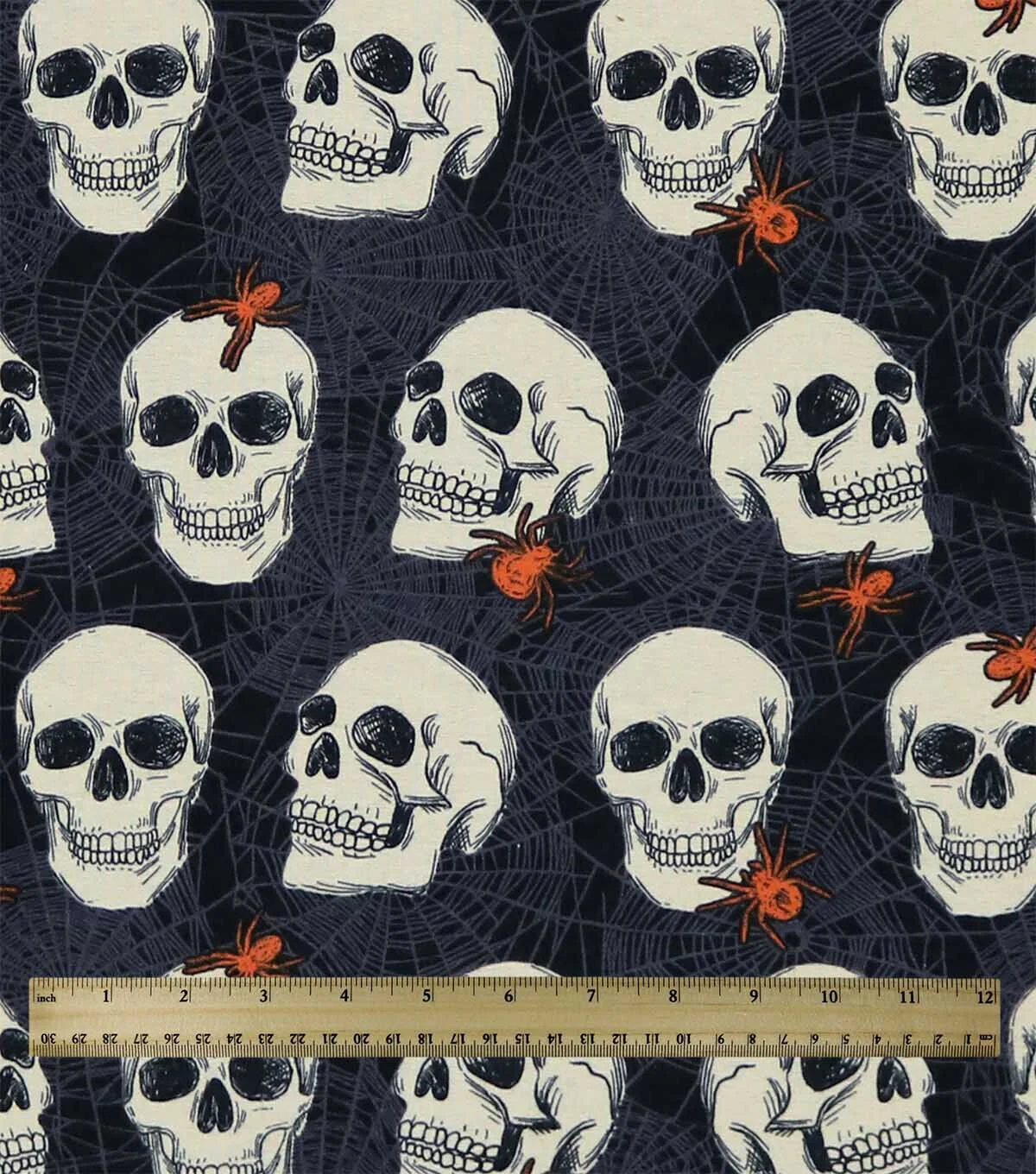 Spiders & Skulls On Black Super Snuggle Flannel Fabric