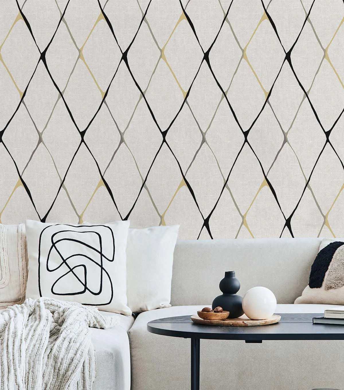 The free-form design of Diamondlike peel and stick wallpaper enlivens with a new take on the classic grid design. Fun and spontaneous Diamondlike will bring new life to your walls and décor. Printed on high quality vinyl self-adhesive it is not only easy to apply and reposition but also 100% removable without leaving any stick residue behind. DIY Friendly. Each roll is 20.5 in. wide by 18 ft. long. Made in the USA.