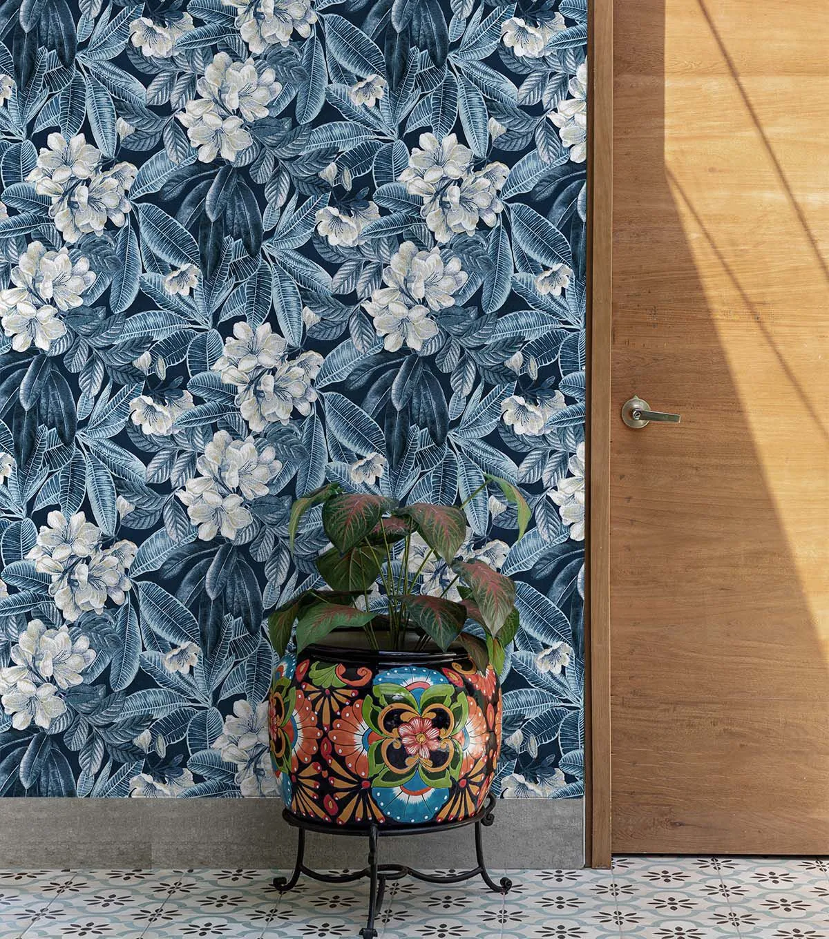 Tommy Bahama midnight Darwin Flora Midnight Blue Peel & Stick Wallpaper