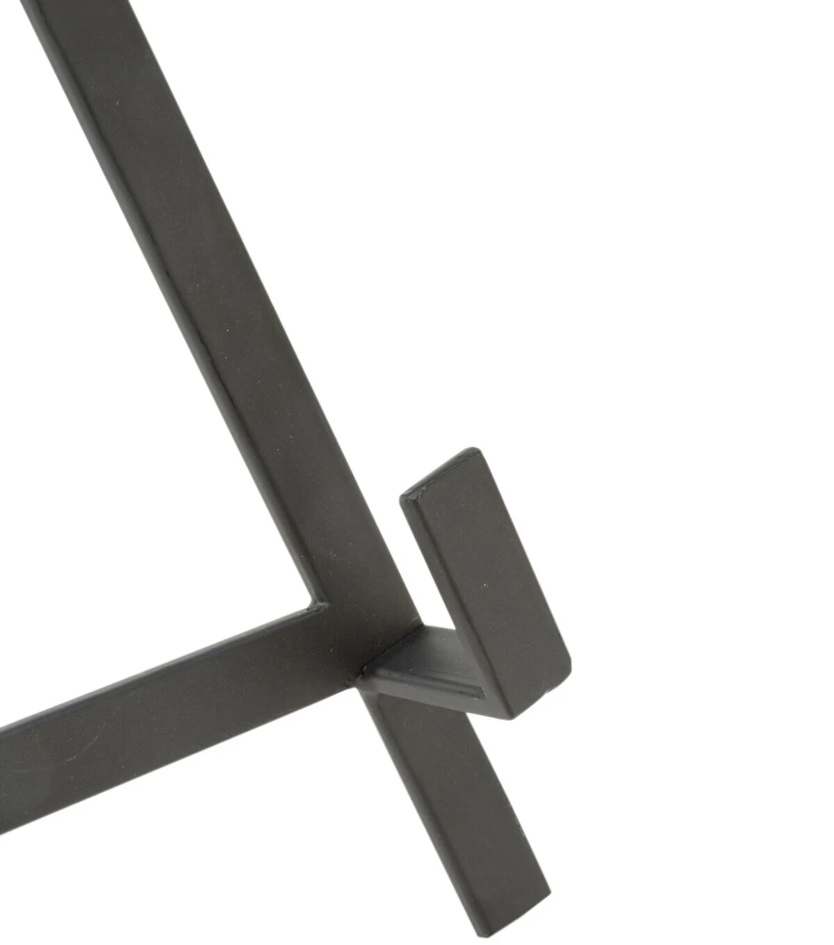 Contemporary, simple A-line metal easel. Perfect easel to showcase literature or art in bookstores, department stores and specialty shops. Works for displaying in home decor as well.