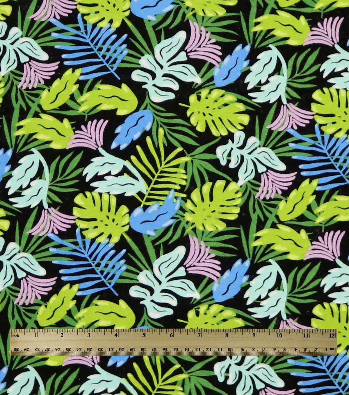 Whether you're creating a cozy blanket, stylish throw pillows, or a unique piece of clothing, our Tropical Leaves on Black Super Snuggle Flannel Fabric is the perfect choice. So why wait? Add this beautiful fabric to your collection today and start creating something truly special!