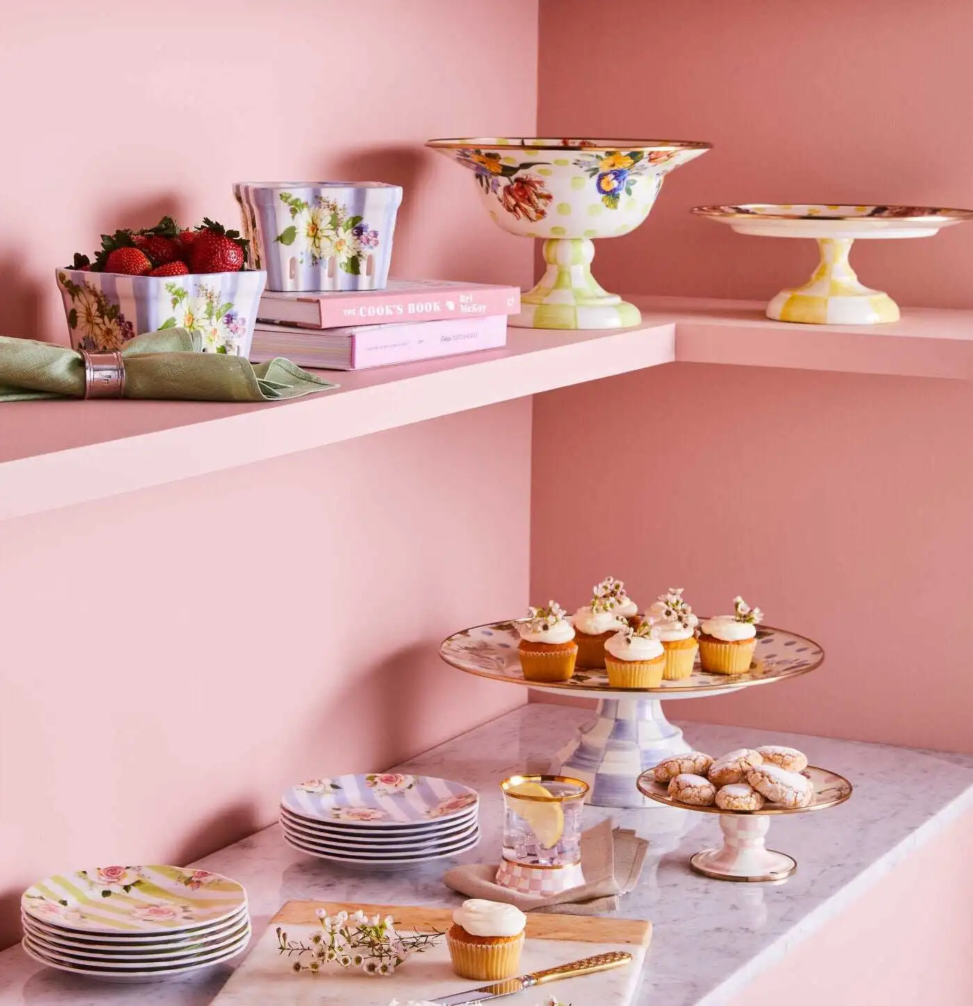 Luxury Royal Check Enamel Dining Pedestal Platter - Small