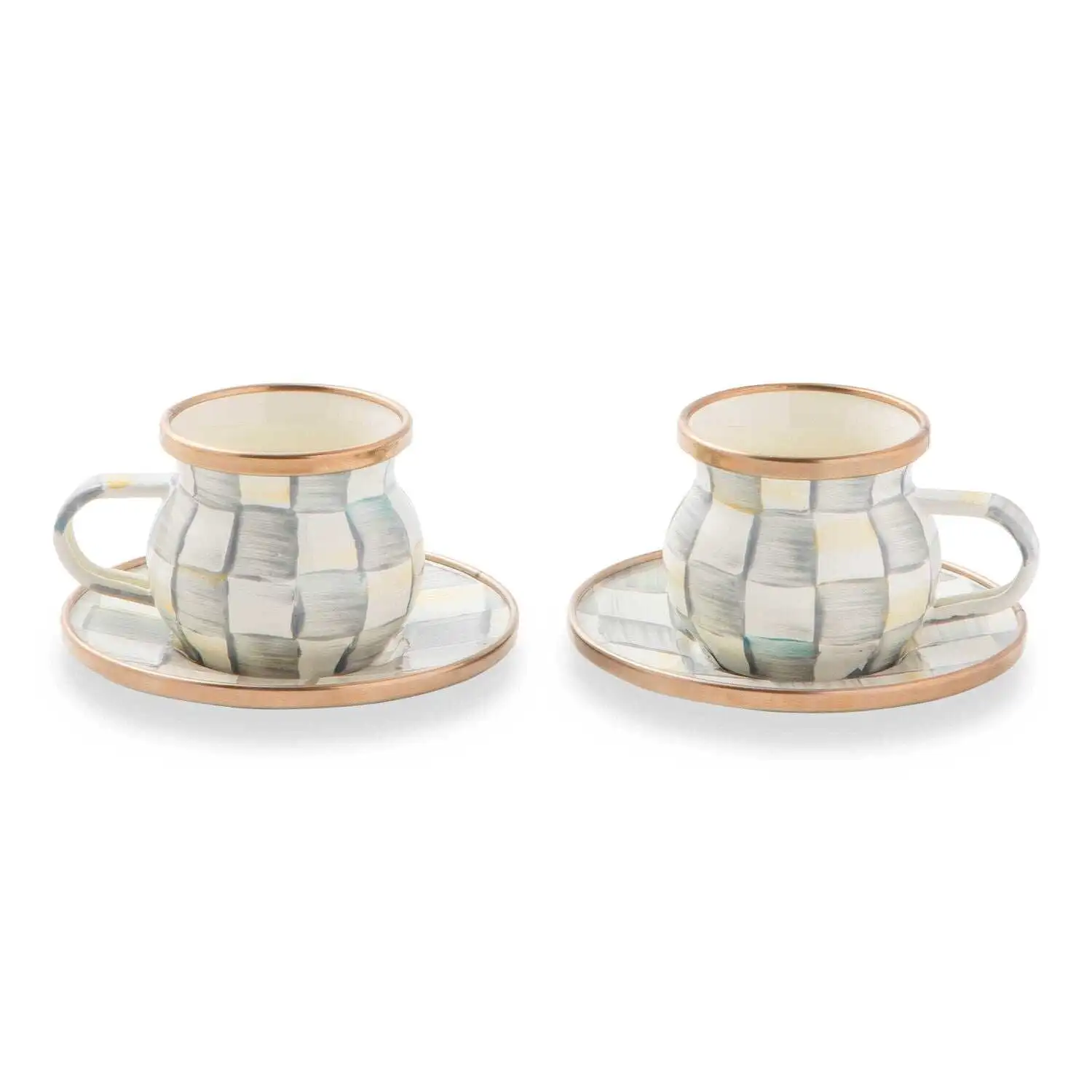 Sterling Check Enamel Espresso Cup & Saucer Set