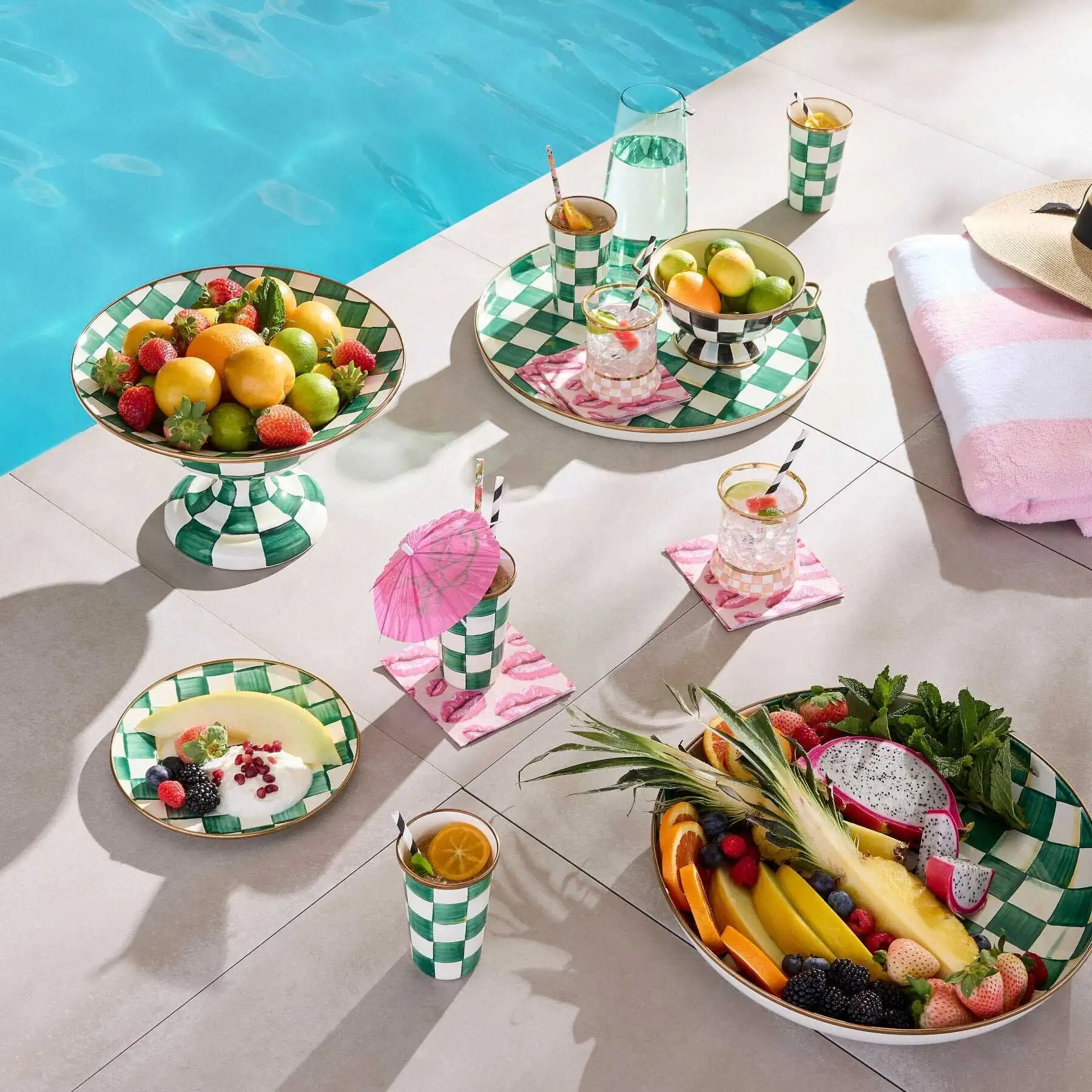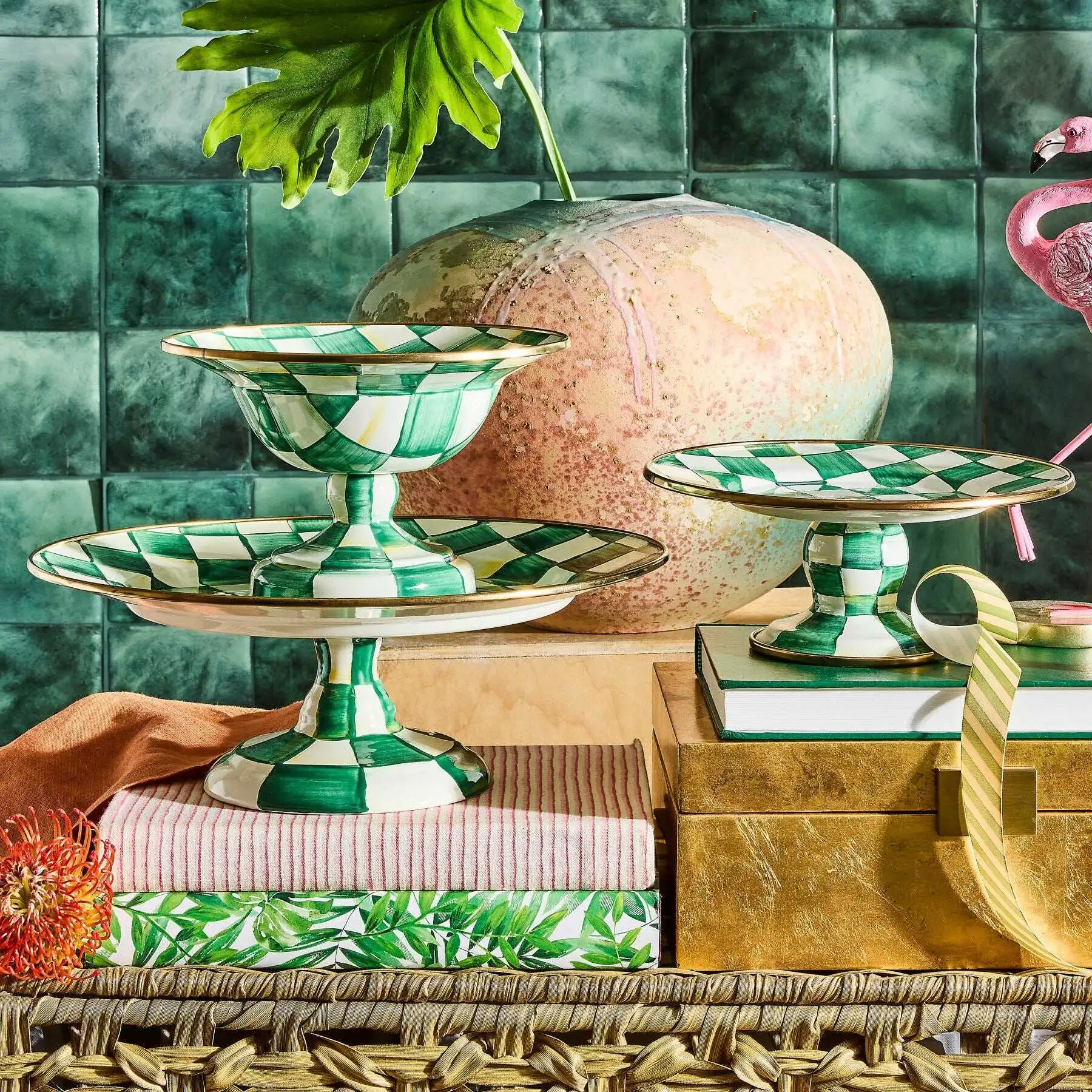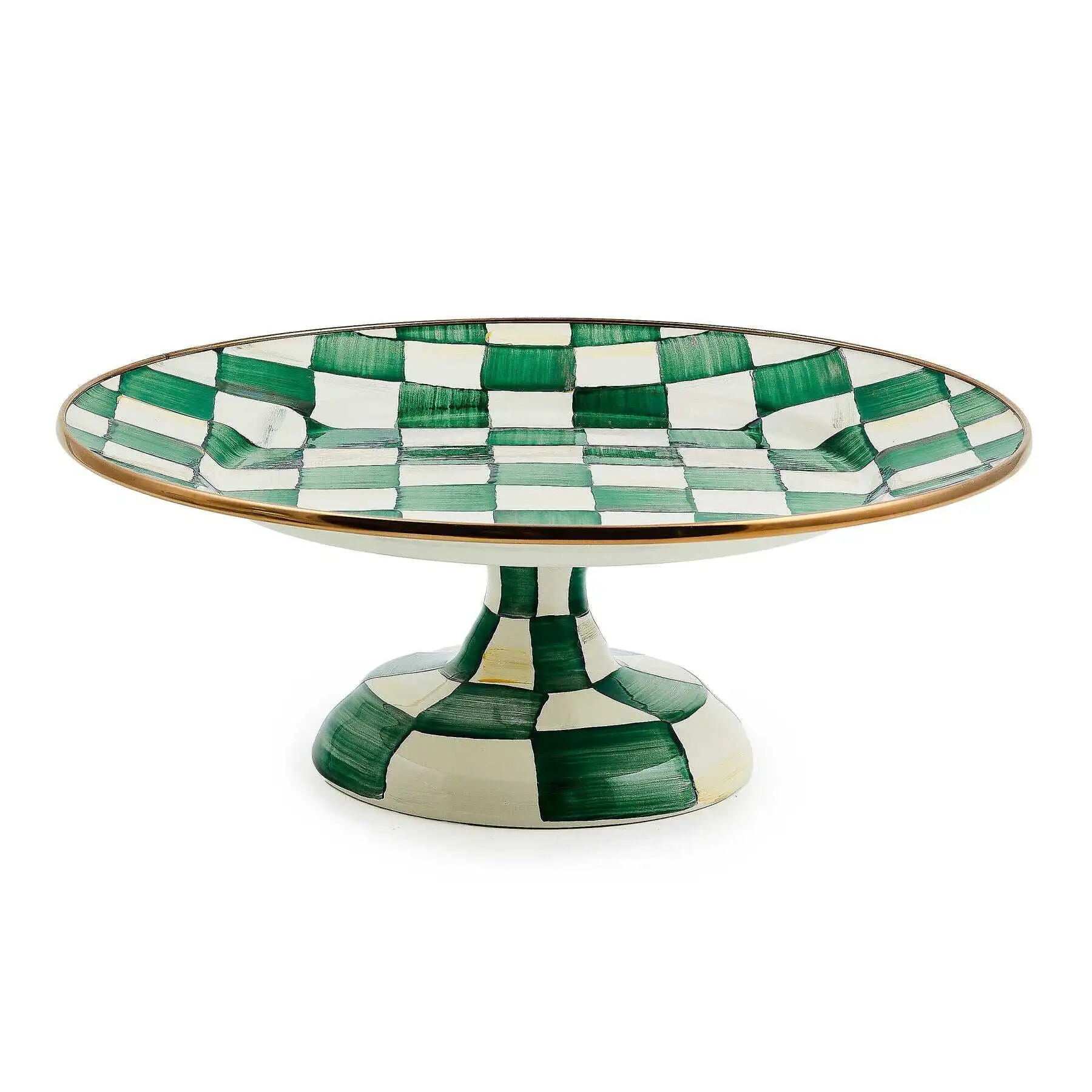 Emerald Check Large Pedestal Platter by Mackenzie-Childs