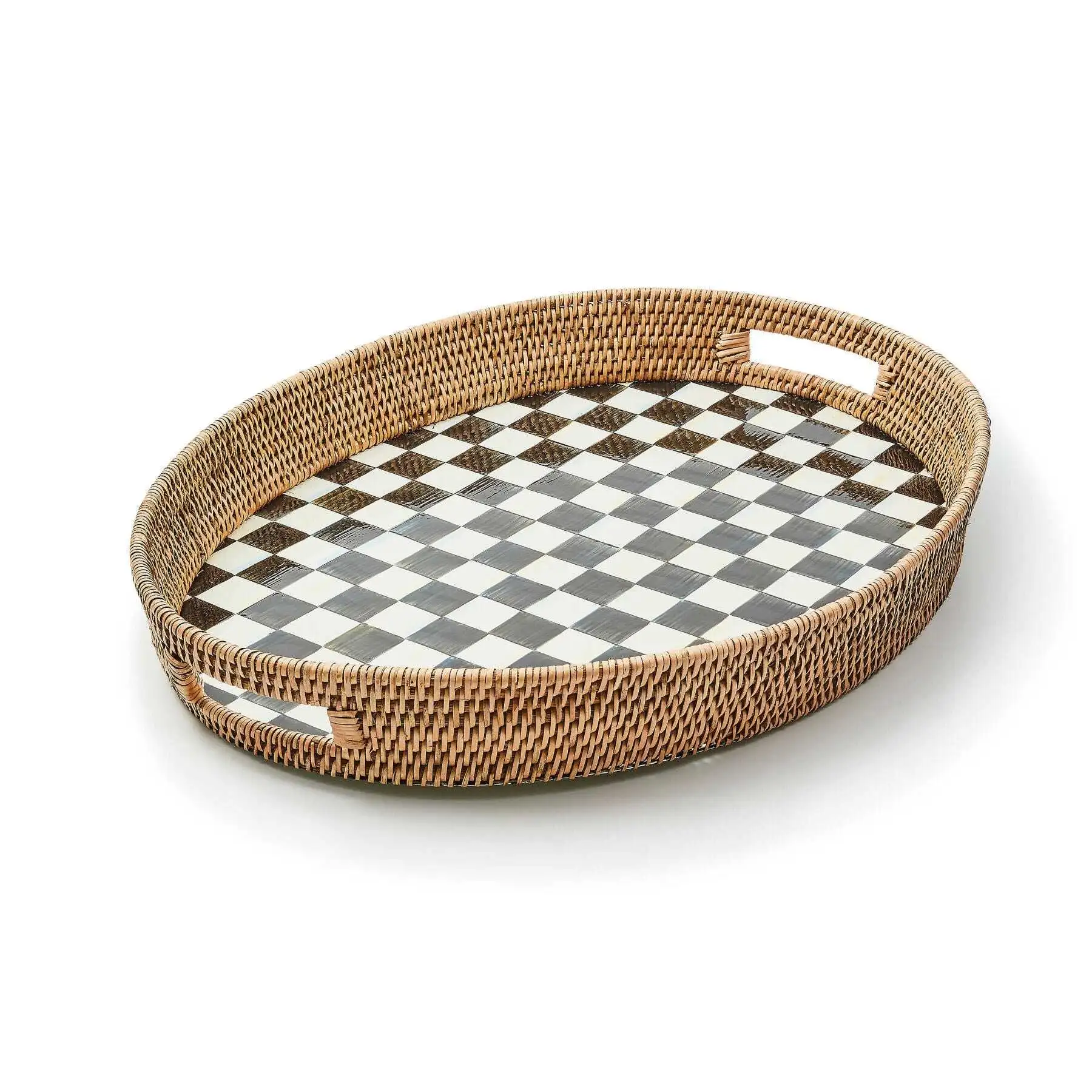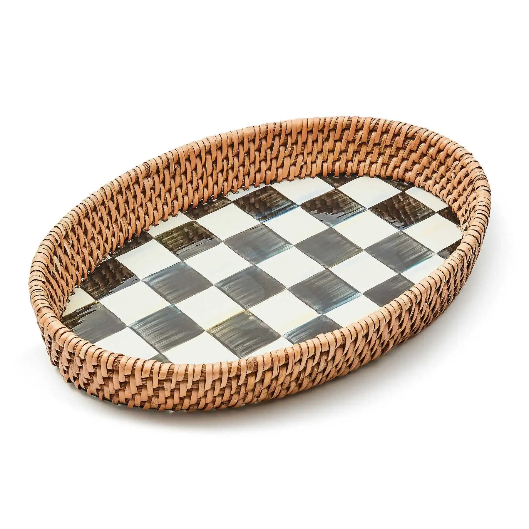 MacKenzie-Childs Courtly Check Enamel & Rattan Party Tray