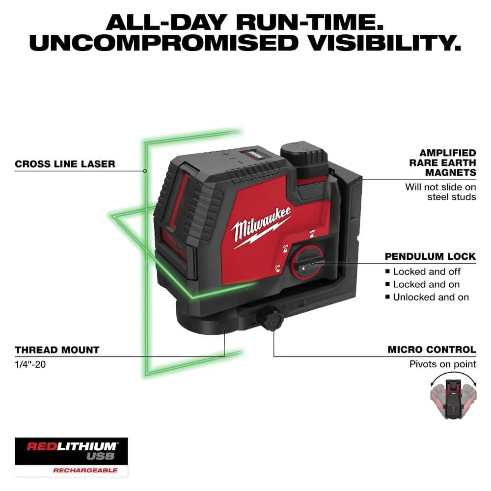100 ft. REDLITHIUM Lithium-Ion USB Green Rechargeable Cross Line Laser Level with Charger