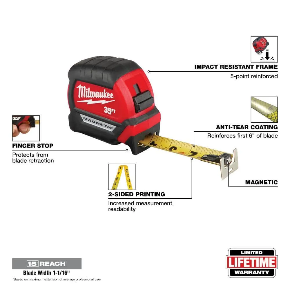 35 ft. x 1-1/16 in. Compact Magnetic Tape Measure with 15 ft. Reach
